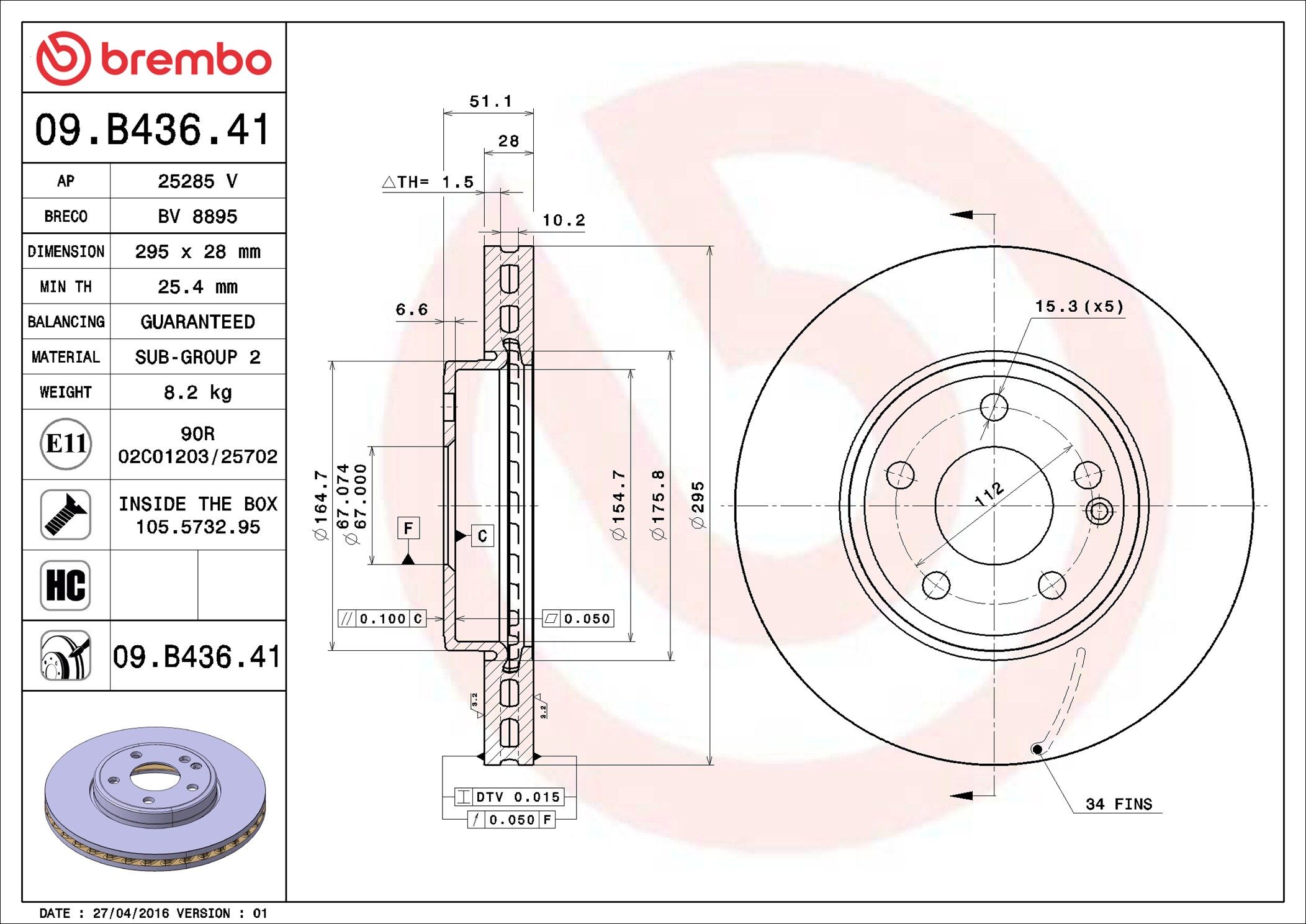 BREMBO 09.B436.41 | Fren Diski Ön (Mercedes Benz W176-W246-W117-W156 4 Matic A CLAss 2012 / B CLAss 2011 / CLA 2013 | 2 Adet Takım