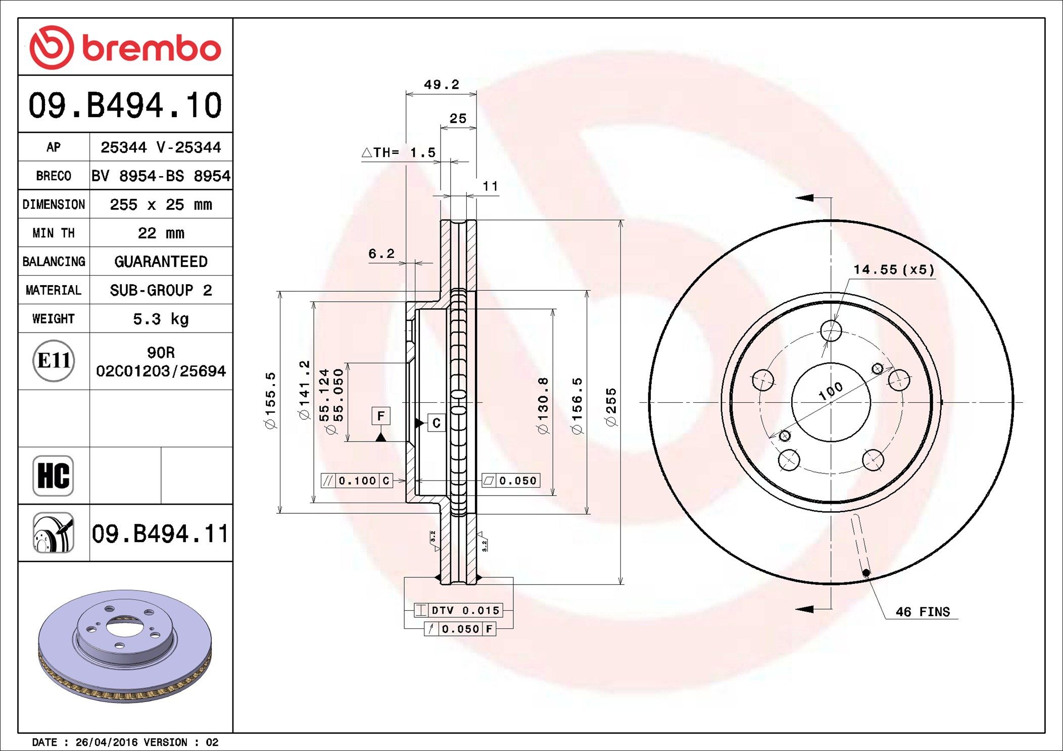 BREMBO 09.B494.10 | Fren Diski Ön Standard Toyota | 2 Adet