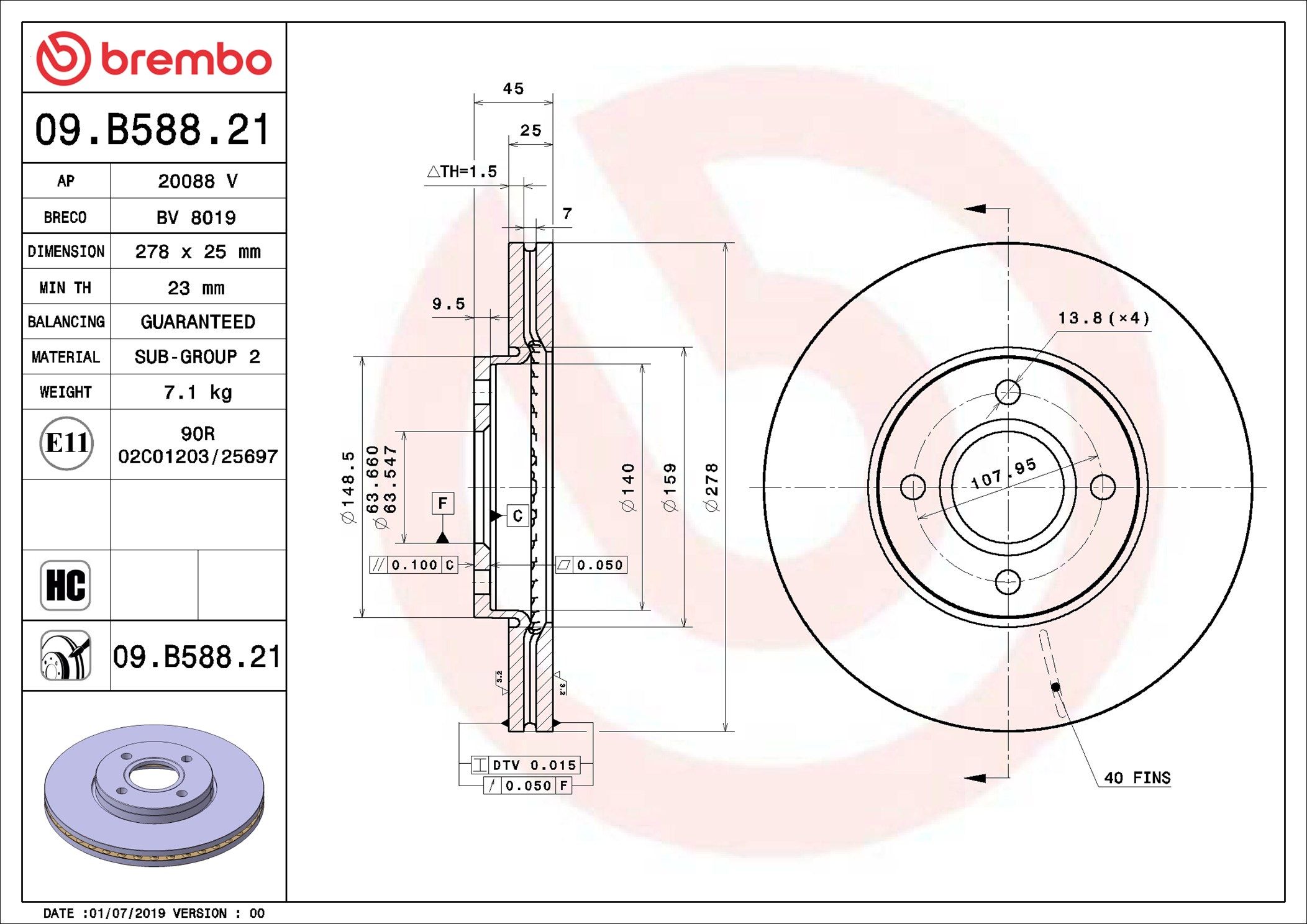 BREMBO 09.B588.21 | Fren Diski Ön UV Coated Ford | 2 Adet (Fren diski)