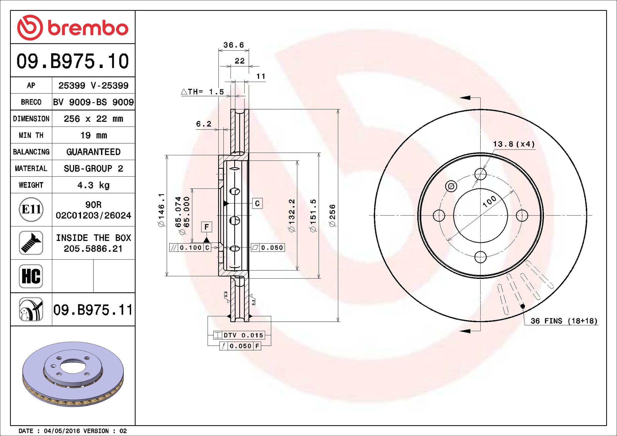BREMBO 09.B975.11 | Fren Diski Ön Citigo 1.0 11 > 19 | 1 Adet (Fren diski)