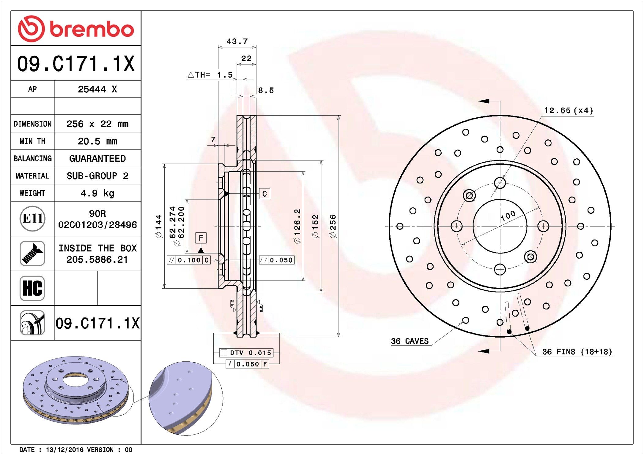 BREMBO 09.C171.1X | Fren Diski Ön Xtra Hyundai | 2 Adet