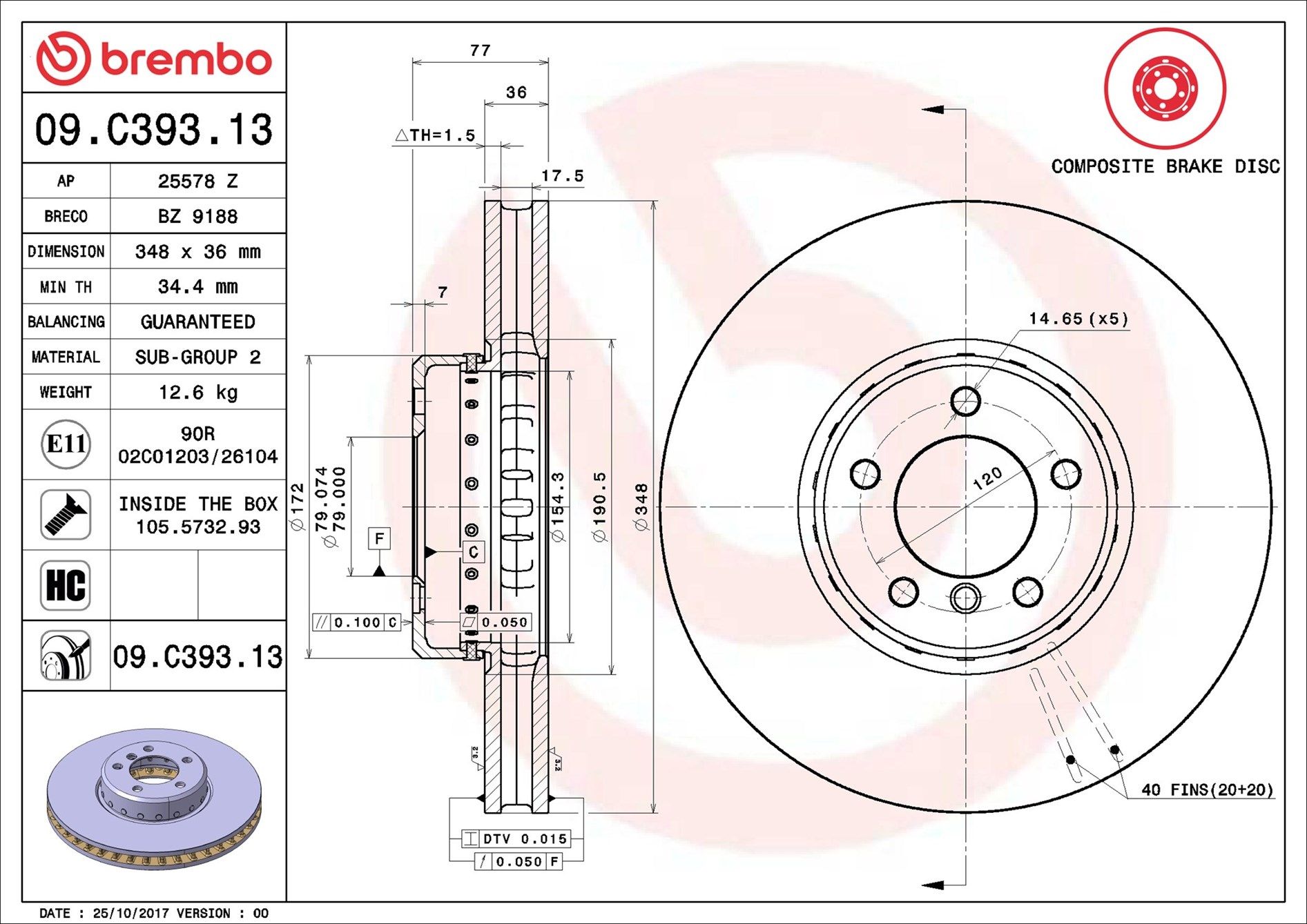 BREMBO 09.C393.13 | Fren Diski Ön Composıte BMW | 2 Adet