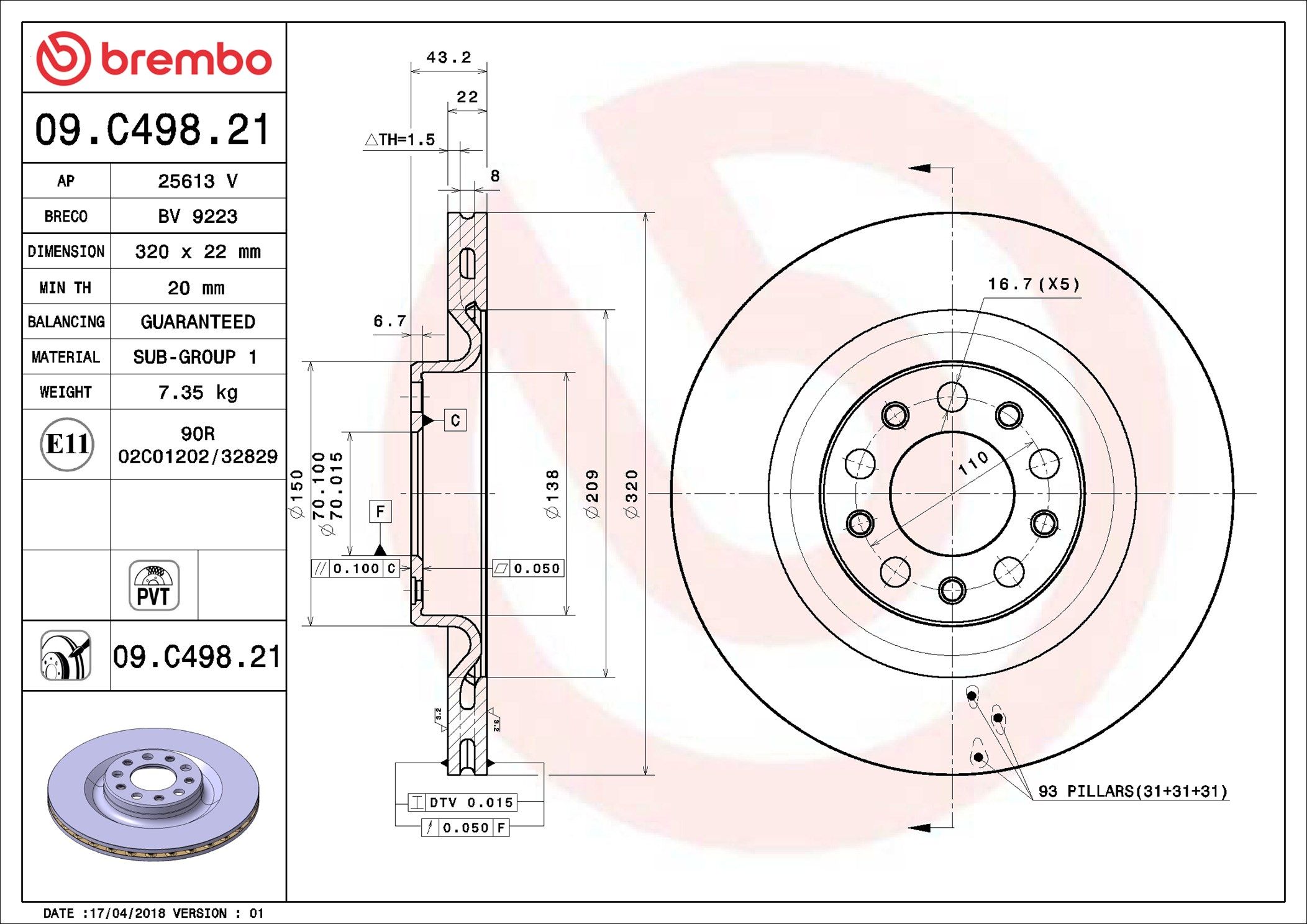 BREMBO 09.C498.21 | Fren Diski Arka UV Coated Alfa Romeo | 2 Adet (Fren diski)
