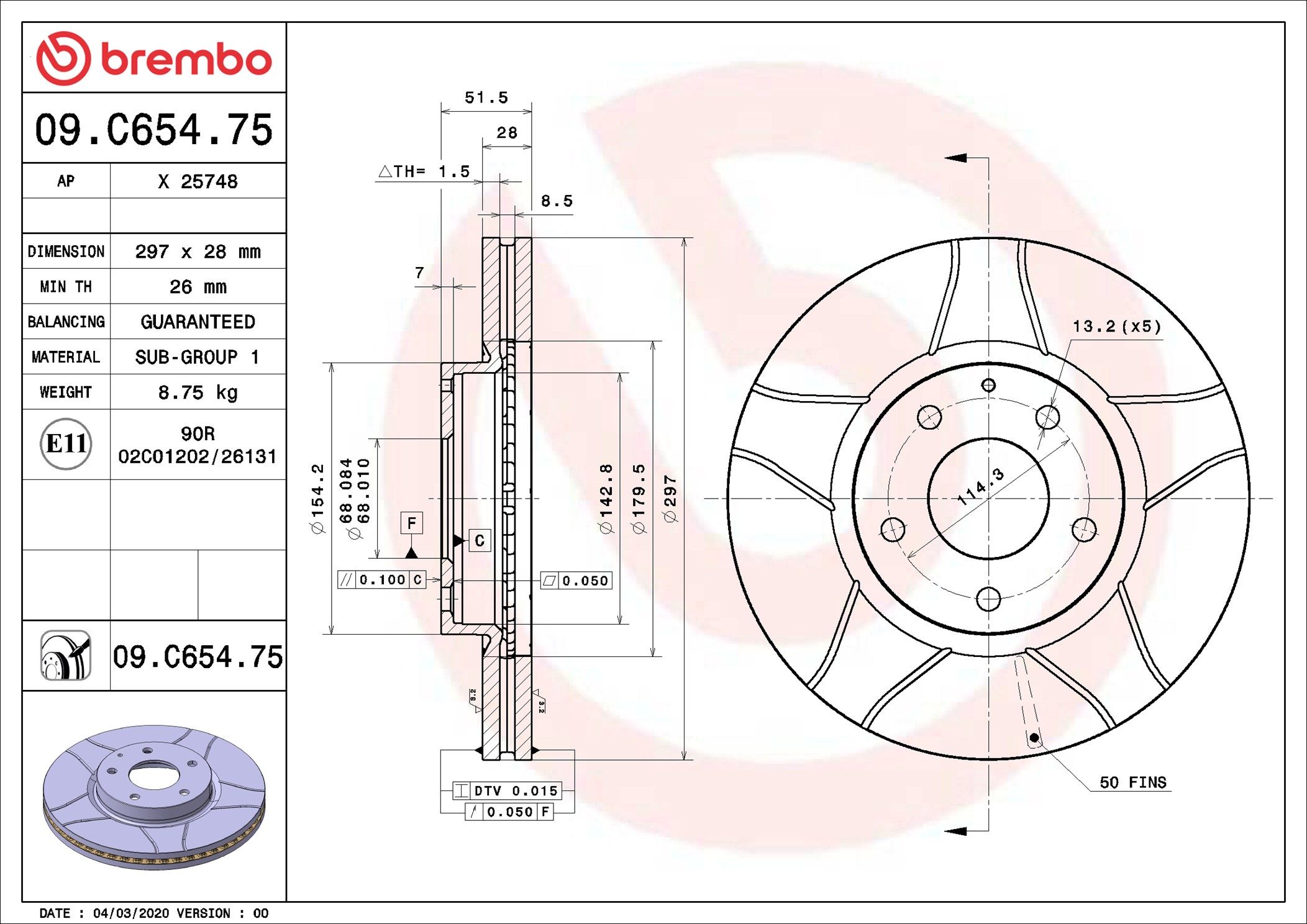 BREMBO 09.C654.75 | Fren Diski Ön Max Mazda