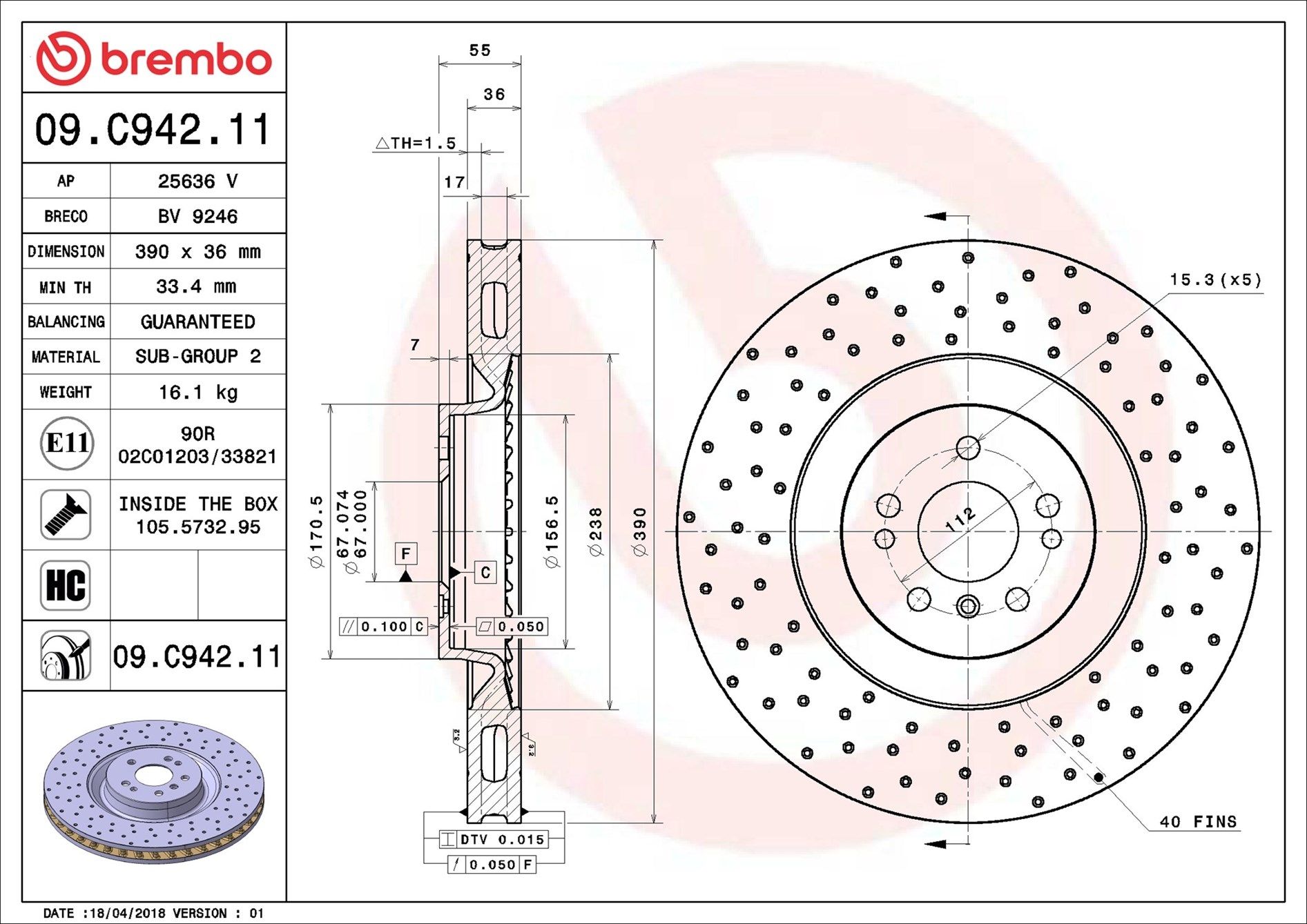 BREMBO 09.C942.11 | Fren Diski Ön UV Coated Mercedes-Benz