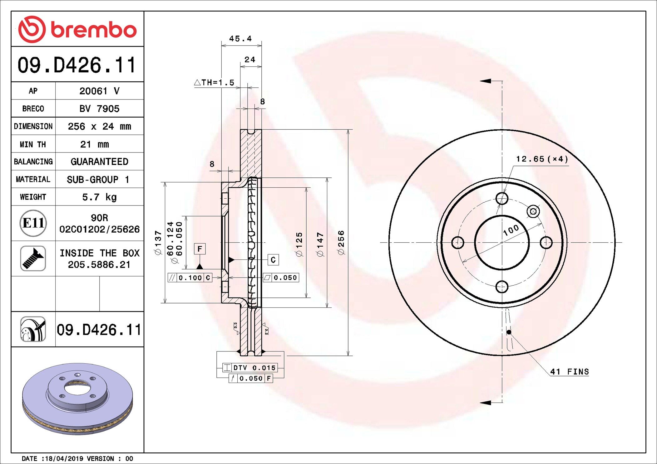BREMBO 09.D426.11 | Fren Diski Ön UV Coated Chevrolet | 2 Adet