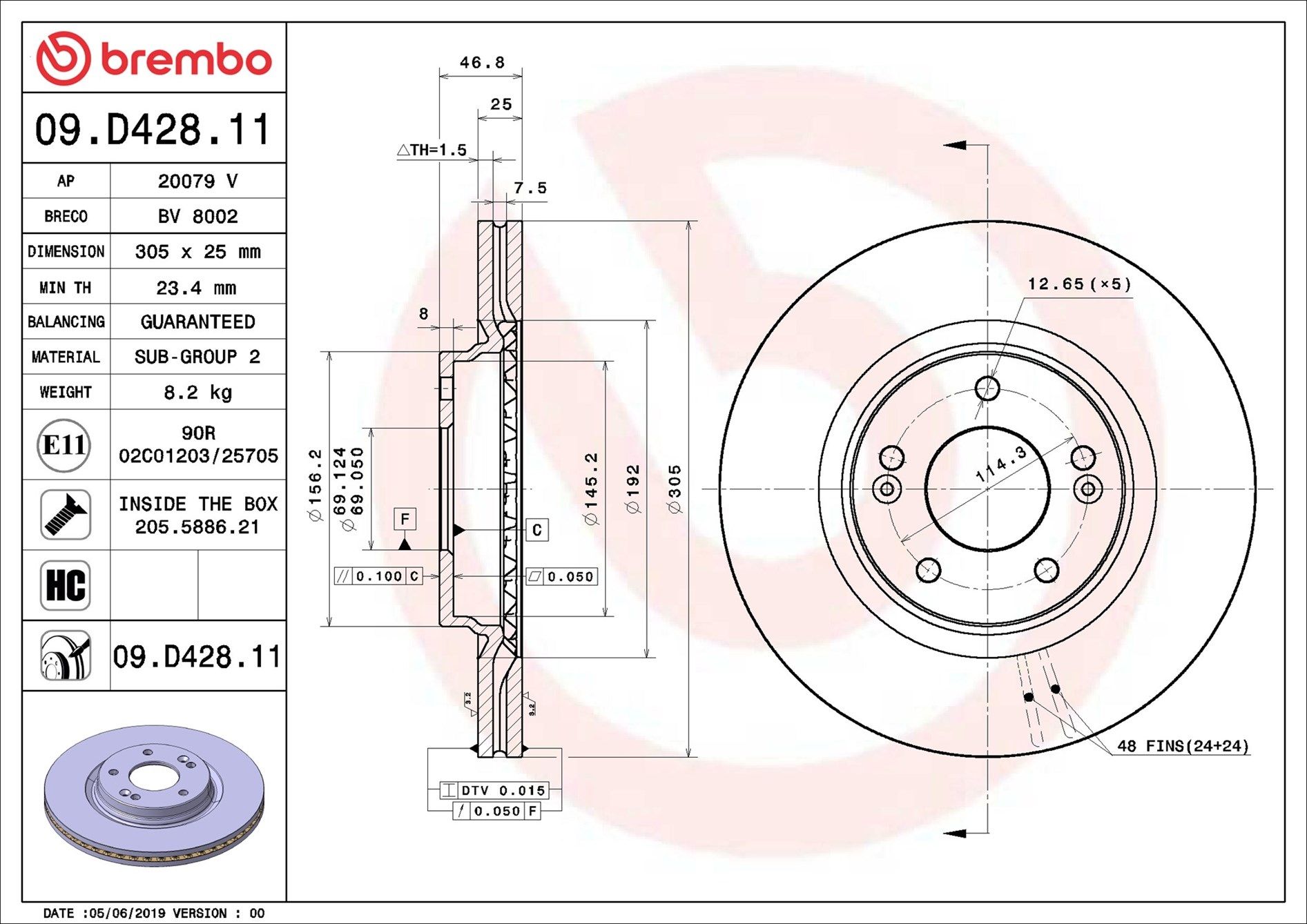 BREMBO 09.D428.11 | Fren Diski Ön Havalı Hyundai Tucson 2015-/ Kona 2018-/ i30 2015-/ Kia Sportage 2015-/ 305×5 | 2 Adet