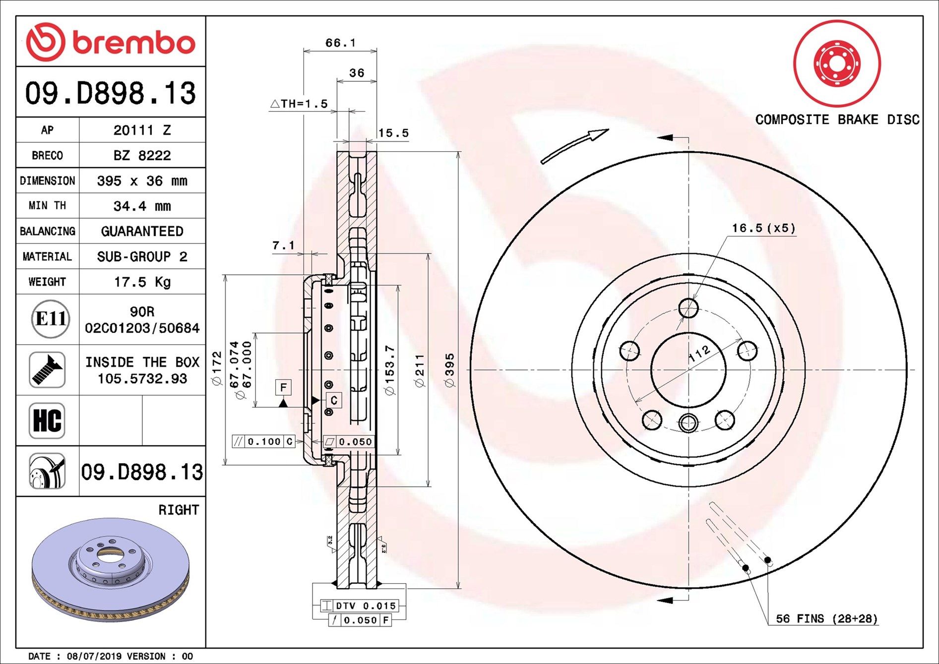 BREMBO 09.D898.13 | Fren Diski Ön Sağ BMW 7 (G12) ,8 (G14) ,8 (G15) ,8 (G16) ,X4 (G02) ,X5 (G05) ,X6 (G06) ,X7 (G07)