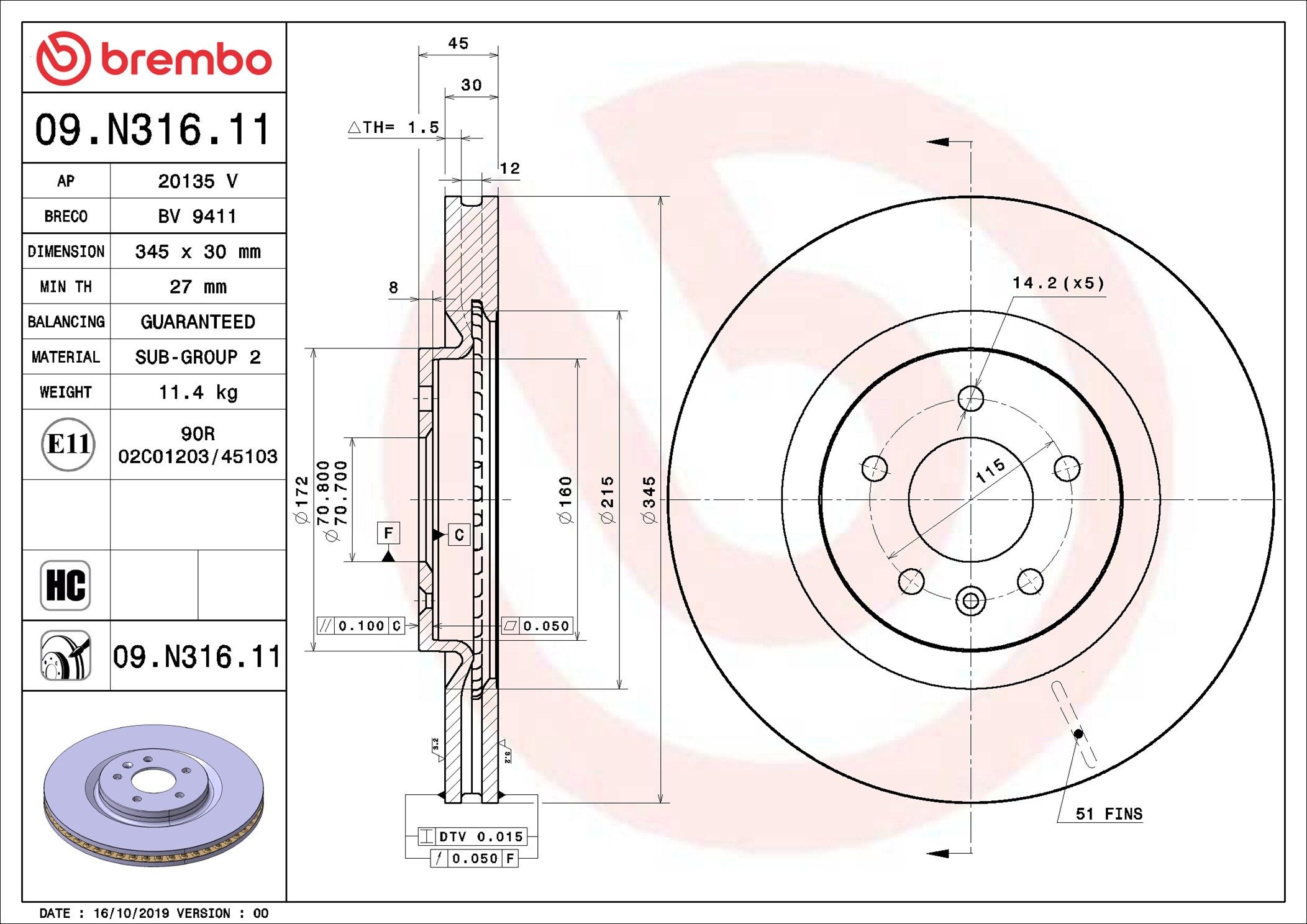 BREMBO 09.N316.11 | Fren Diski Ön UV Coated Opel | 2 Adet