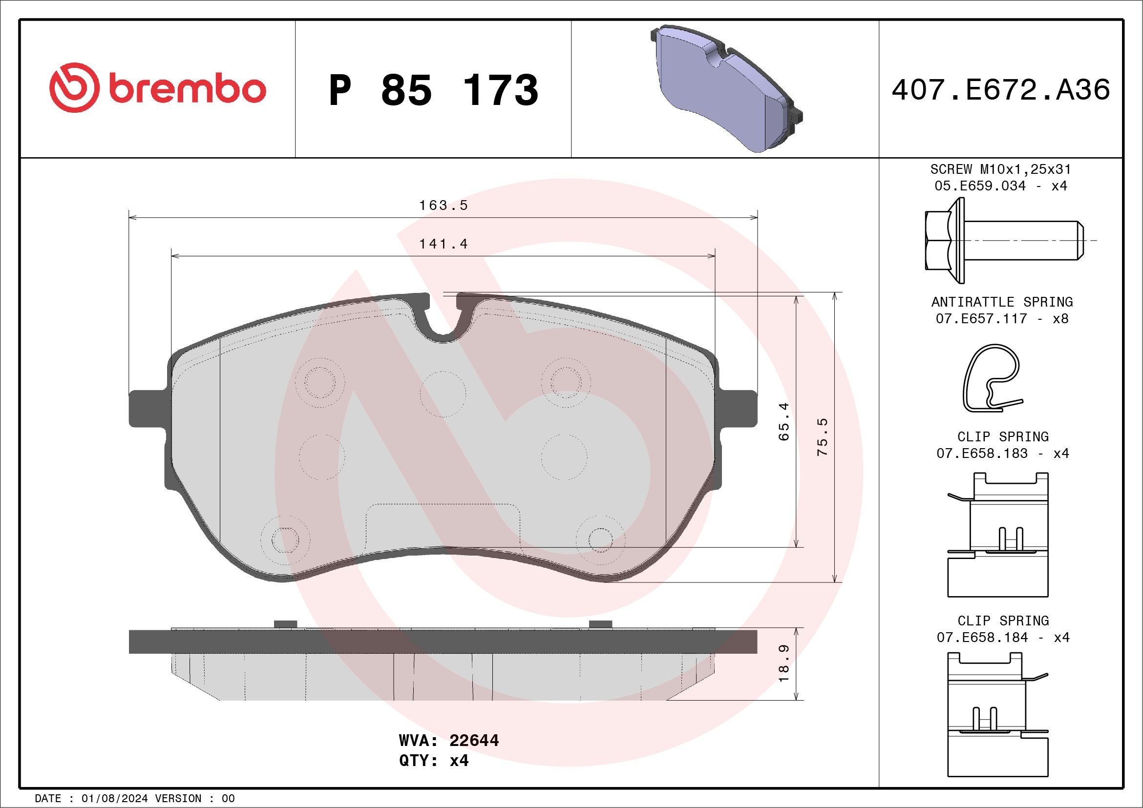 BREMBO P85173 | Ön Fren Balatası. Amarok 17 > 3,0 TDI