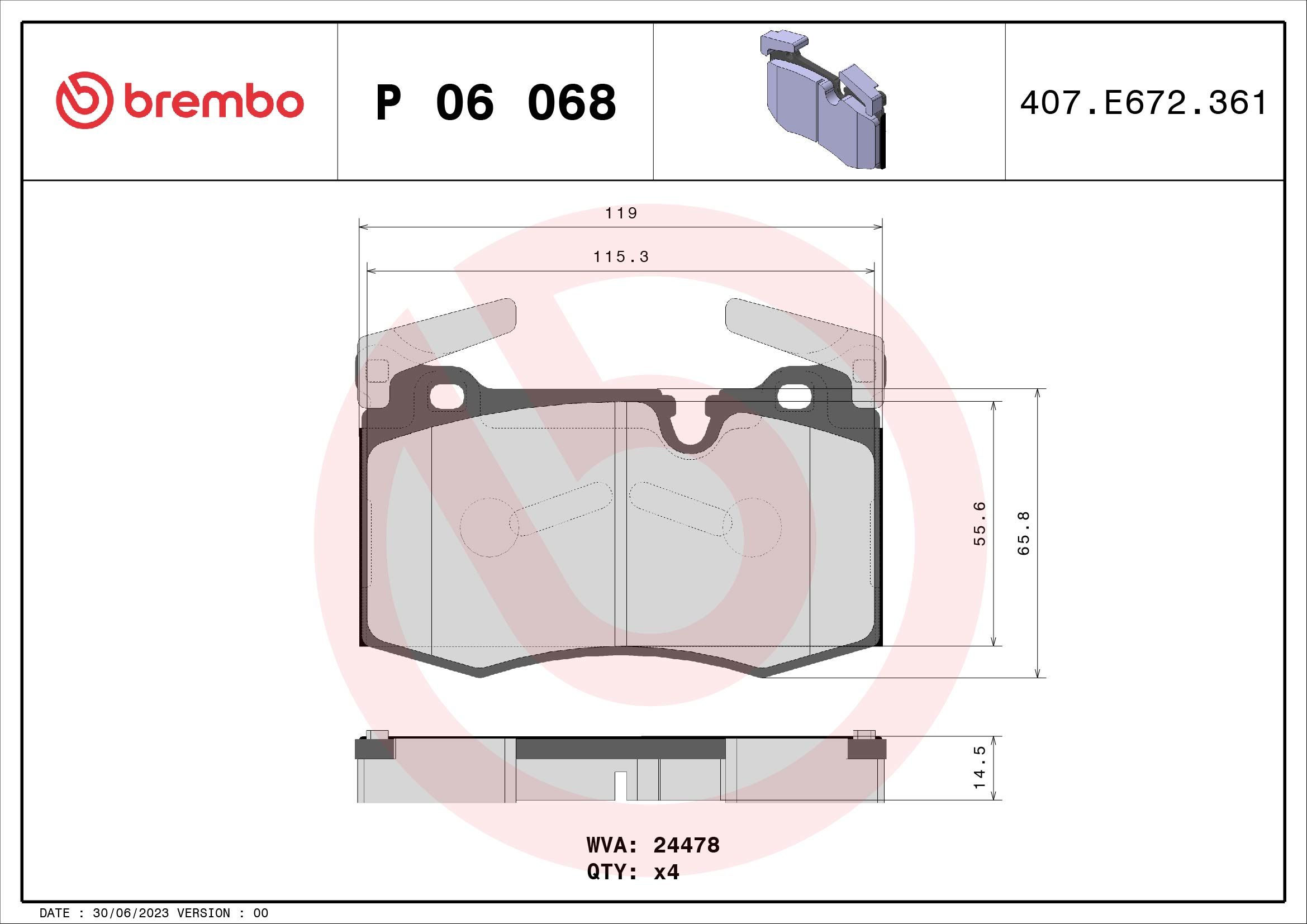 BREMBO P06068 | Fren Balatası Ön Low-Met Mini (Fren balata seti, diskli fren)