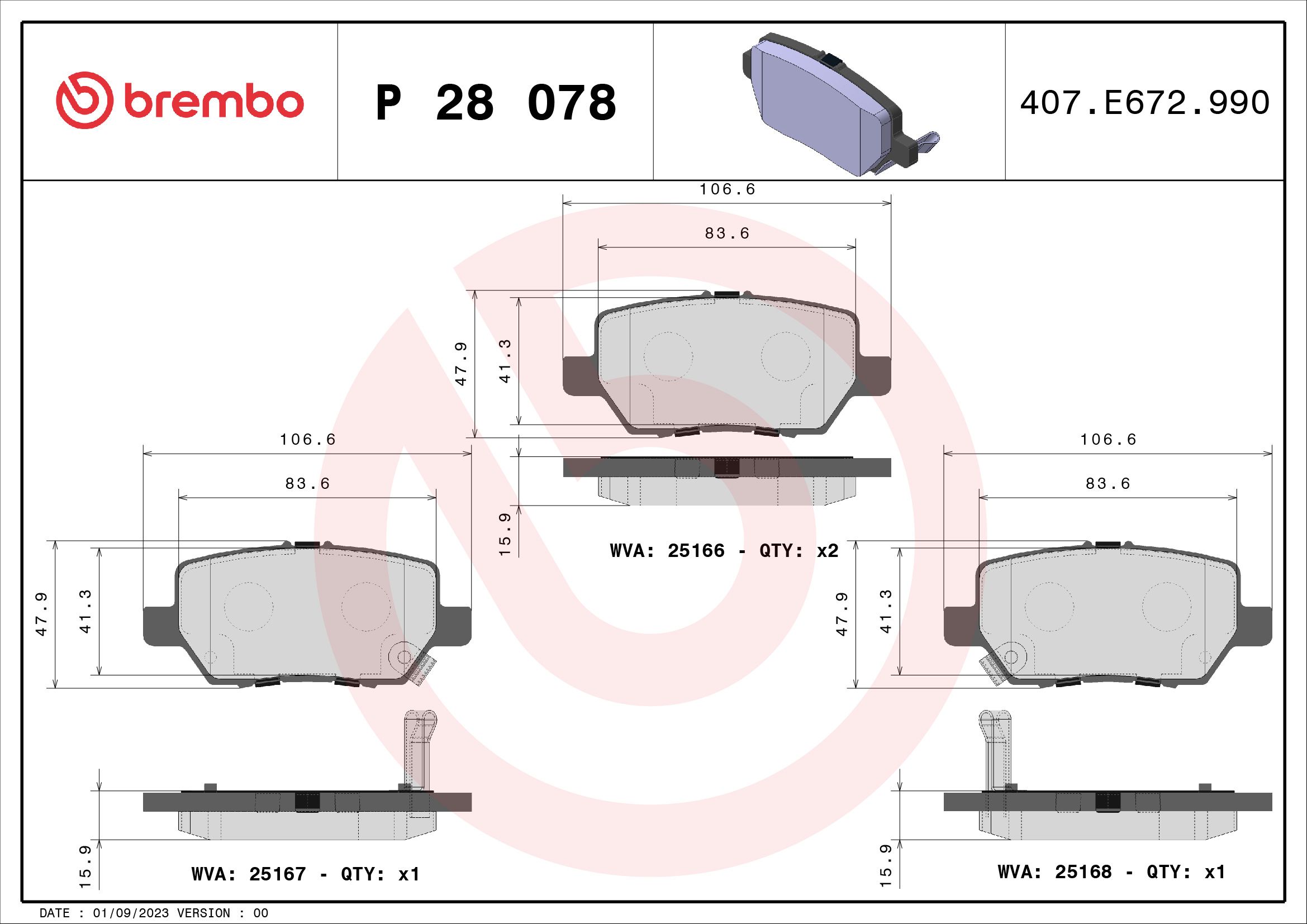 BREMBO P28078 | Fren Balatası Arka Low-Met Honda