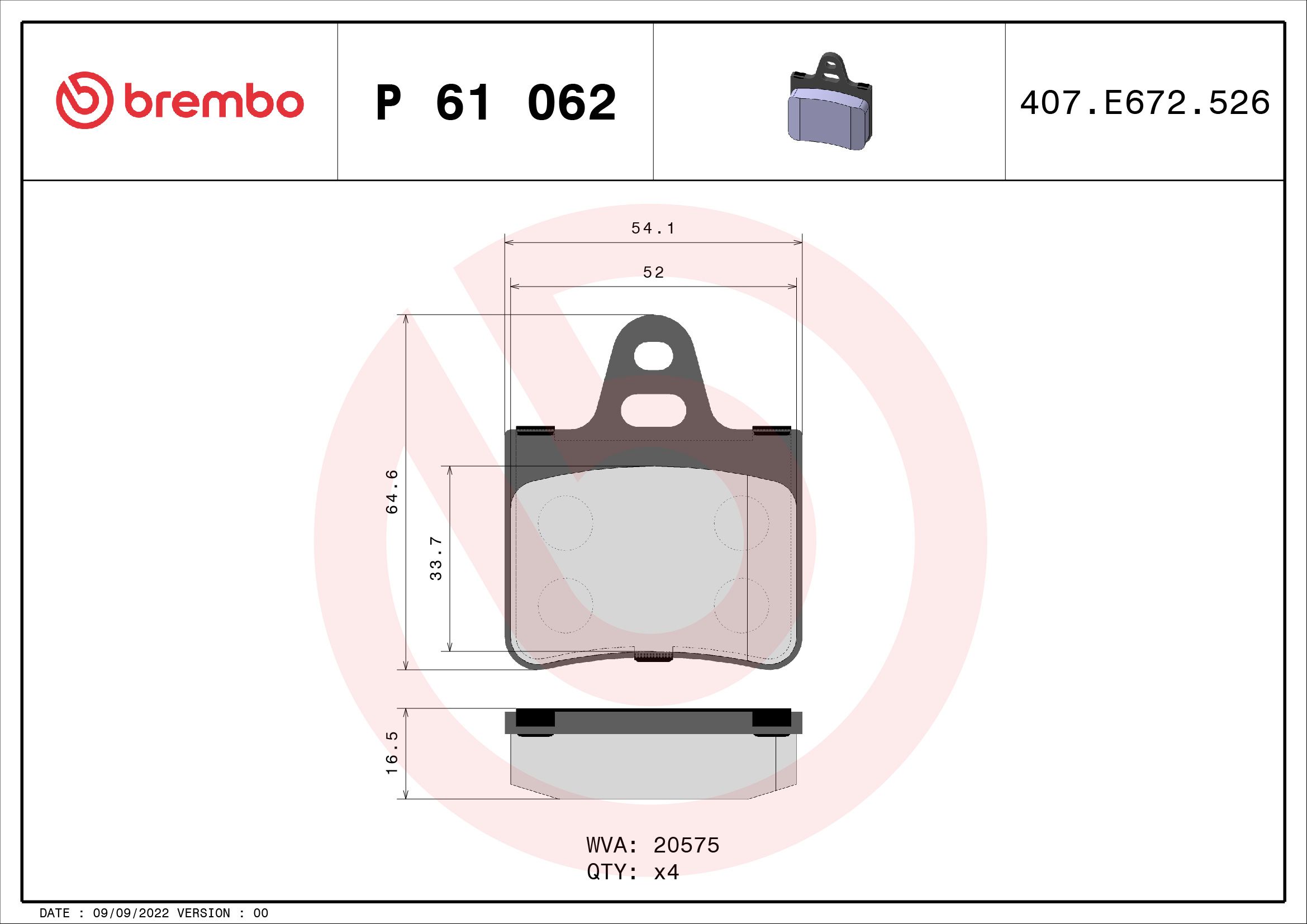 BREMBO P61062 | Fren Balatası Arka Low-Met Citroen (Fren balata seti, diskli fren)