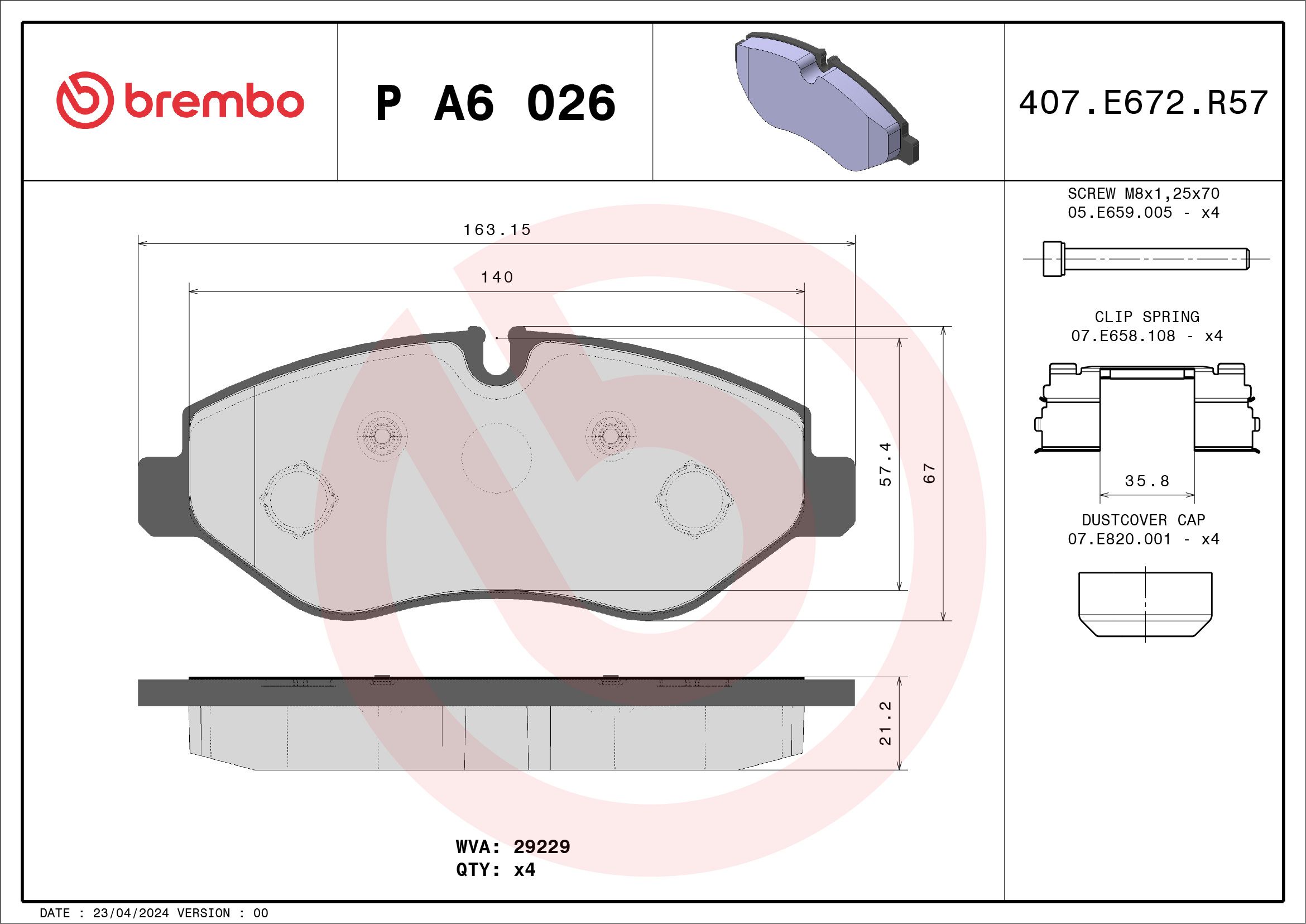 BREMBO PA6026 | Ön Fren Disk Balatası (Iveco: Daily III 29-35-40 06 -)