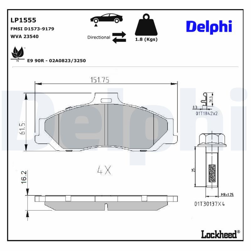 DELPHI LP1555 | Fren Balata Ön 01-07 B-Seri (B2500)-Ranger 06-Bt50