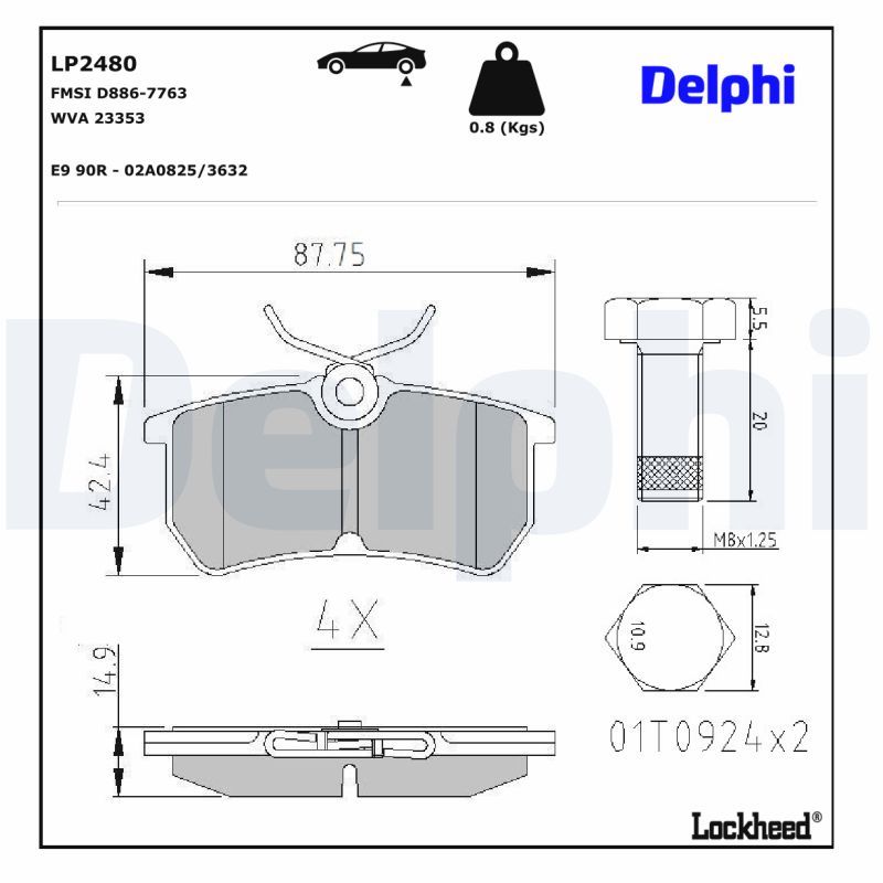 DELPHI LP2480 | Arka Fren Balatası (Ford: Fiesta VI 1.5Tdcı 2012 -) (Fren balata seti, diskli fren)