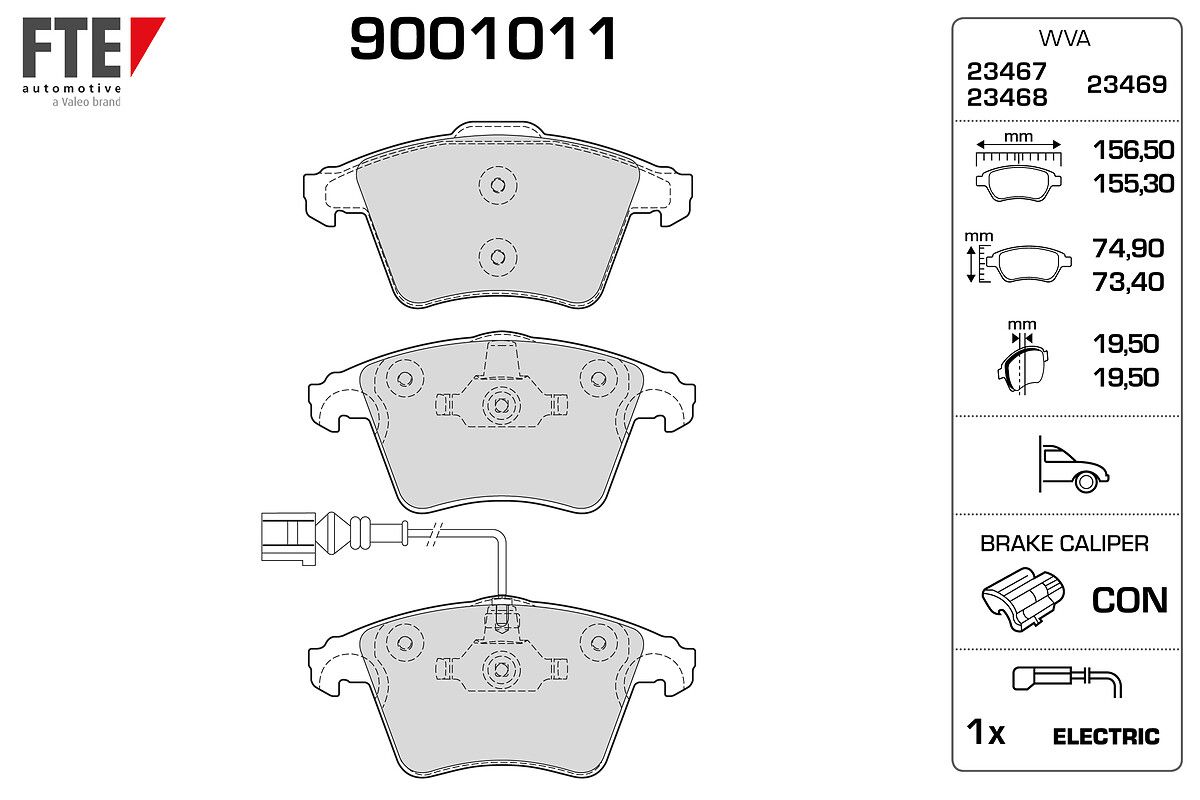 FTE 9001011 | Ön Fren Balatası Kablolu - 19,50mm (Vw Transporter 03-19) (Fren balata seti, diskli fren)