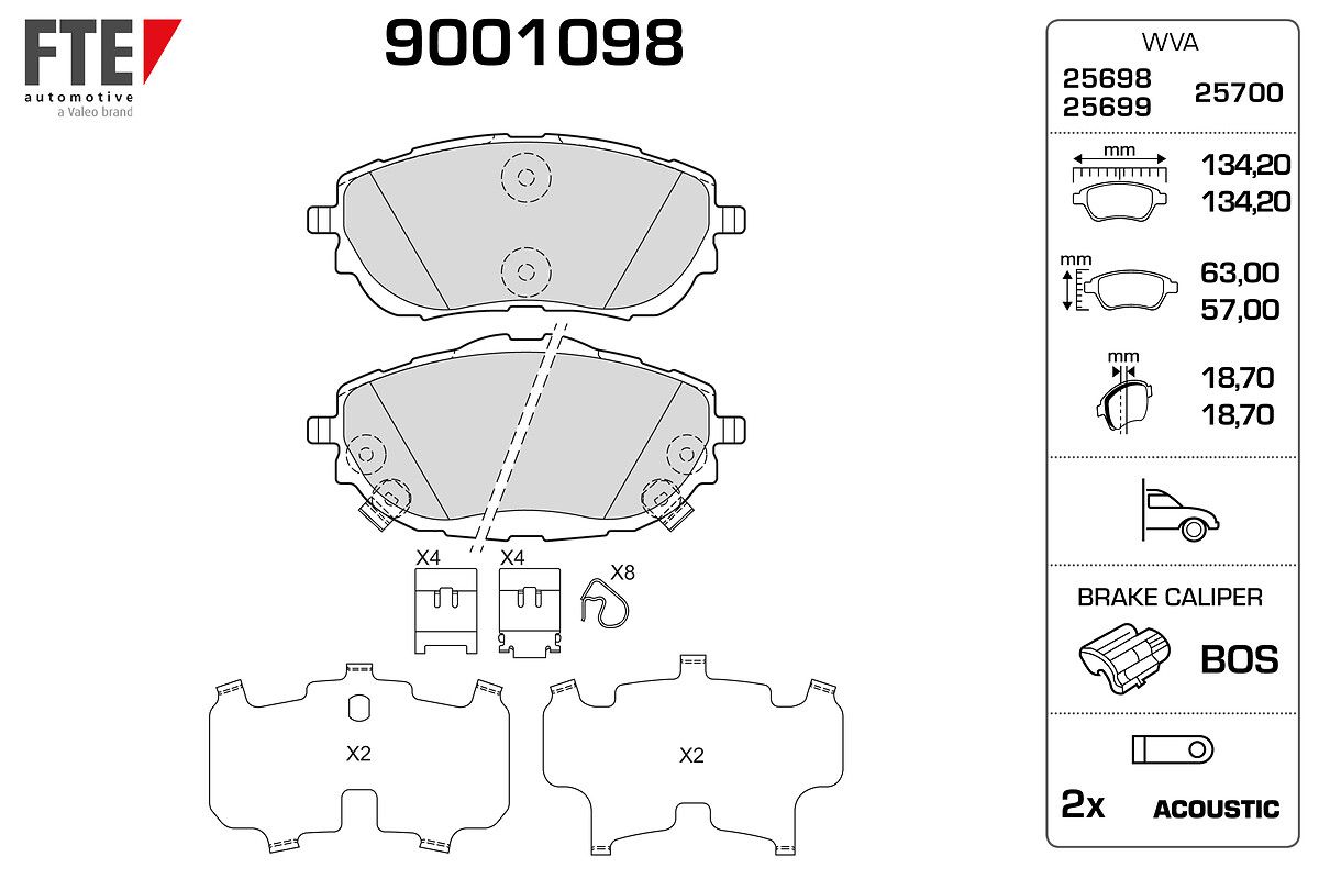 FTE 9001098 | Ön Fren Balatası Toyota Corolla 2013- Auris 2012- 1.33 1.6 Benzinli 1.4 D4d Dizel (Fren balata seti, diskli fren)
