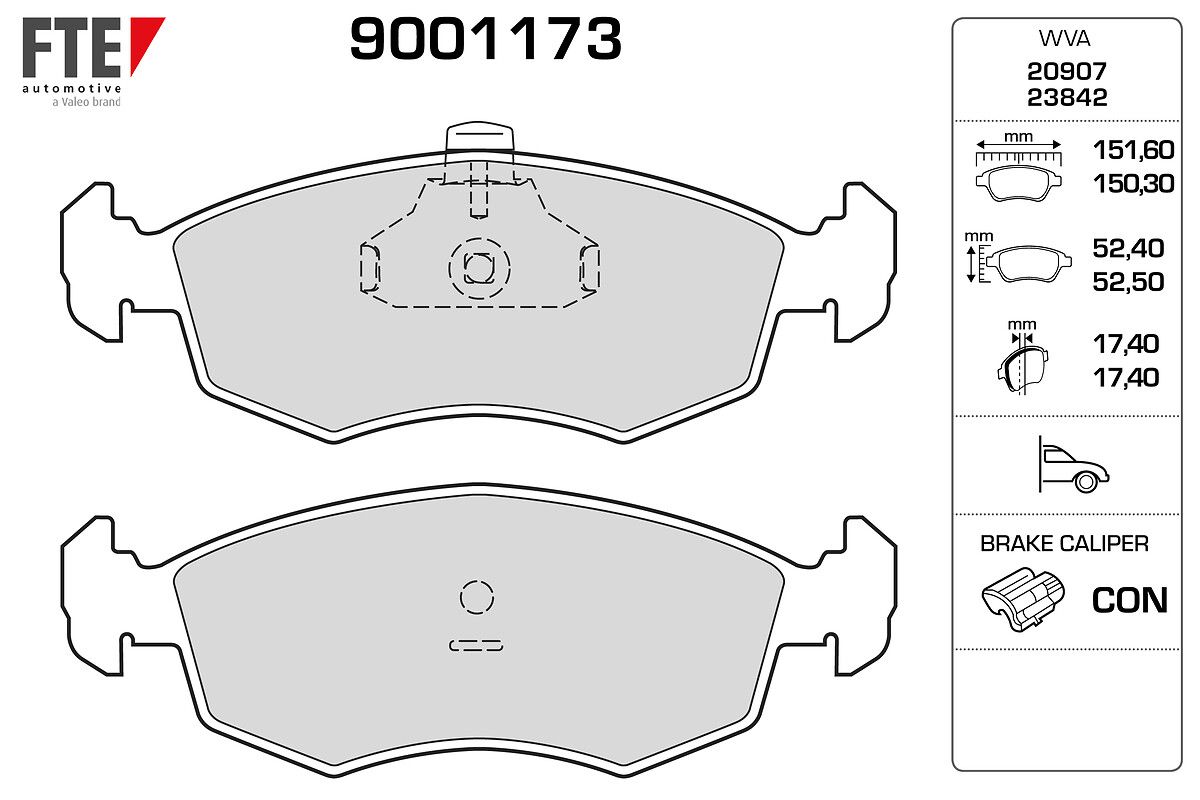 FTE 9001173 | Disk Fren Balatası (On) Fiat Doblo (00-09) , Palio Weekend (96 -) , Albea (01 -) | 1 Adet (Fren balata seti, diskli fren)