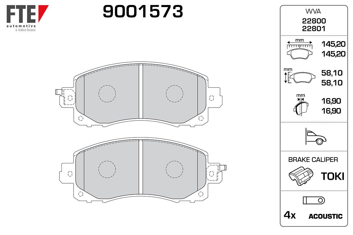 FTE 9001573 | Fren Balatası Ön Subaru Impreza 16-> Xv 17-> (Fren balata seti, diskli fren)