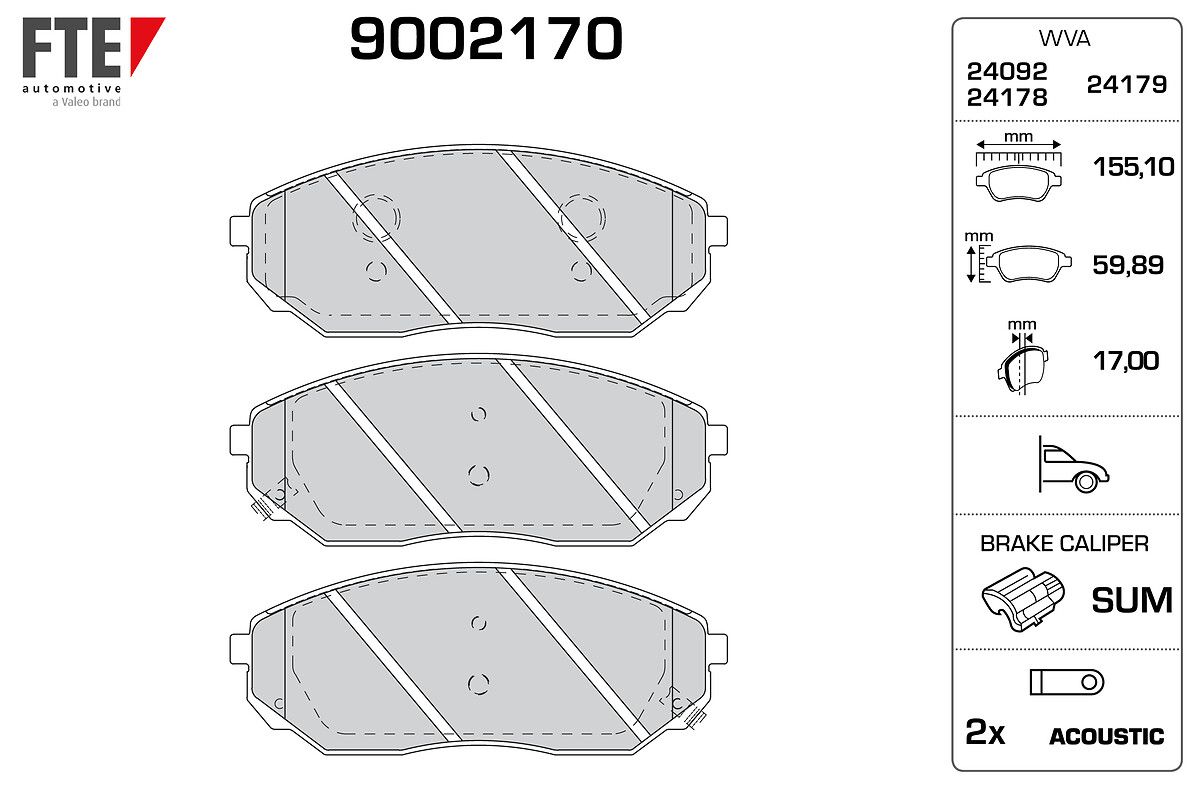 FTE 9002170 | Ön Fren Balatası Kia Sorento 2.5 CRDI 02-09 140Hp 170Hp (Fren balata seti, diskli fren)