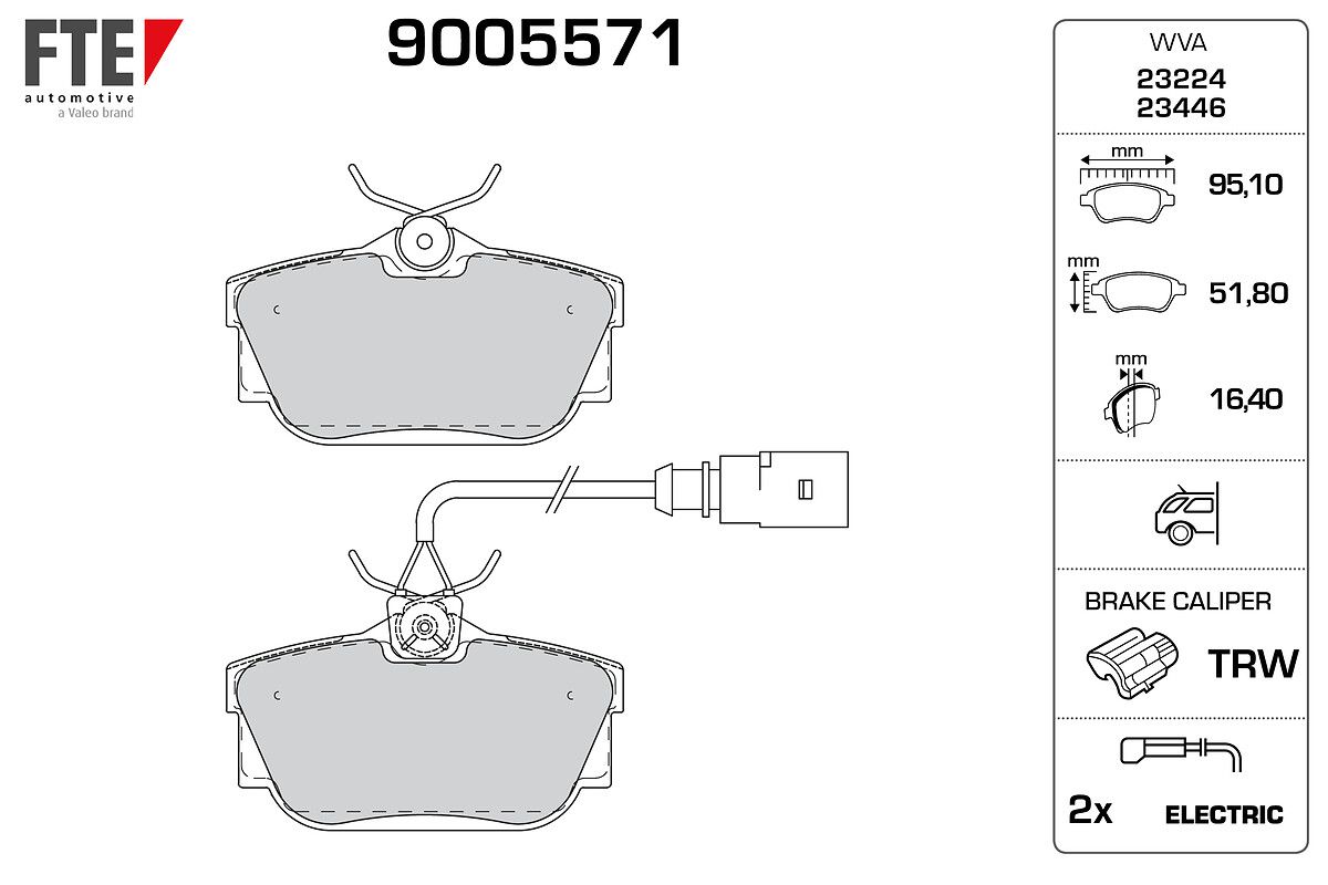 FTE 9005571 | Arka Fren Balatası (Kablolu) Sharan Alhambra Transporter T4 99-03 Galaxy 1,9Td 00-06 Mondeo III St220 02-07