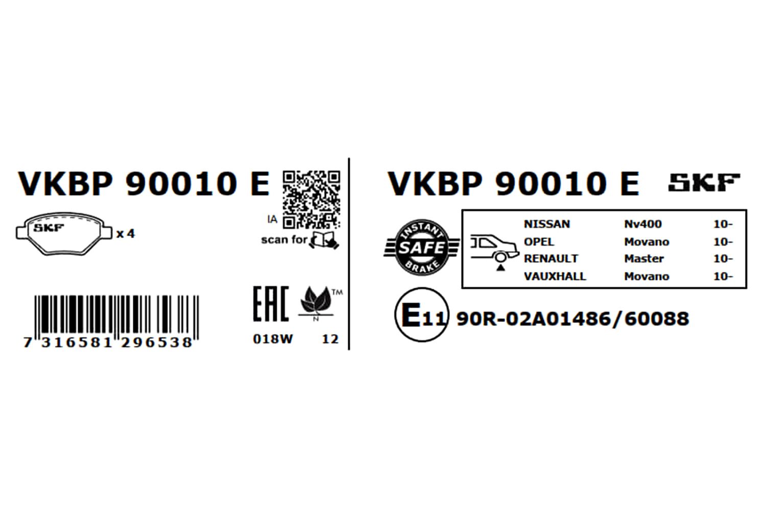 SKF VKBP90010E | Arka Fren Balatası Movano Master III 2,3 CDTI 10 > (Fren balata seti, diskli fren)