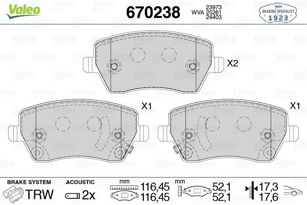 VALEO 670238 | Fren Balata Ön 11-Micra-Note (Fren balata seti, diskli fren)