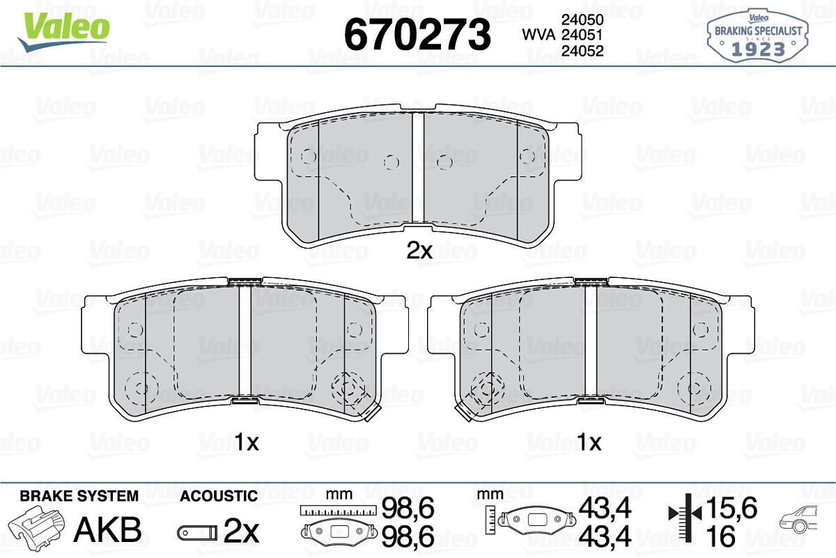 VALEO 670273 | Fren Balata Arka 05-Tucson-Santa Fe-Sonata-Getz-Trajet (Fren balata seti, diskli fren)