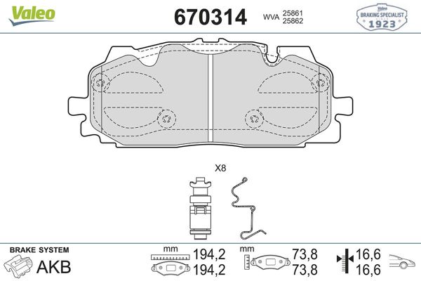 VALEO 670314 | Fren Balatası Ön Q7 2.0 TFSI 3.0 TFSI 3.0 TDI Quattro 15 - (Fren balata seti, diskli fren)