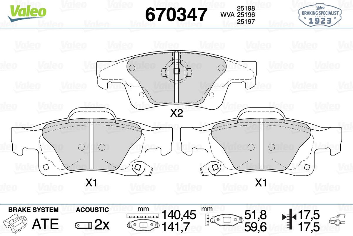 VALEO 670347 | Fren Balata Arka 11-Grand Cherokee