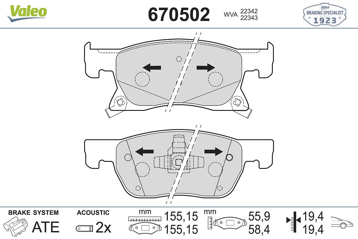 VALEO 670502 | Fren Balatası Ön 15 Jant-Opel Astra K 1.0 1.4 1.6 1.6 CDTI (Fren balata seti, diskli fren)