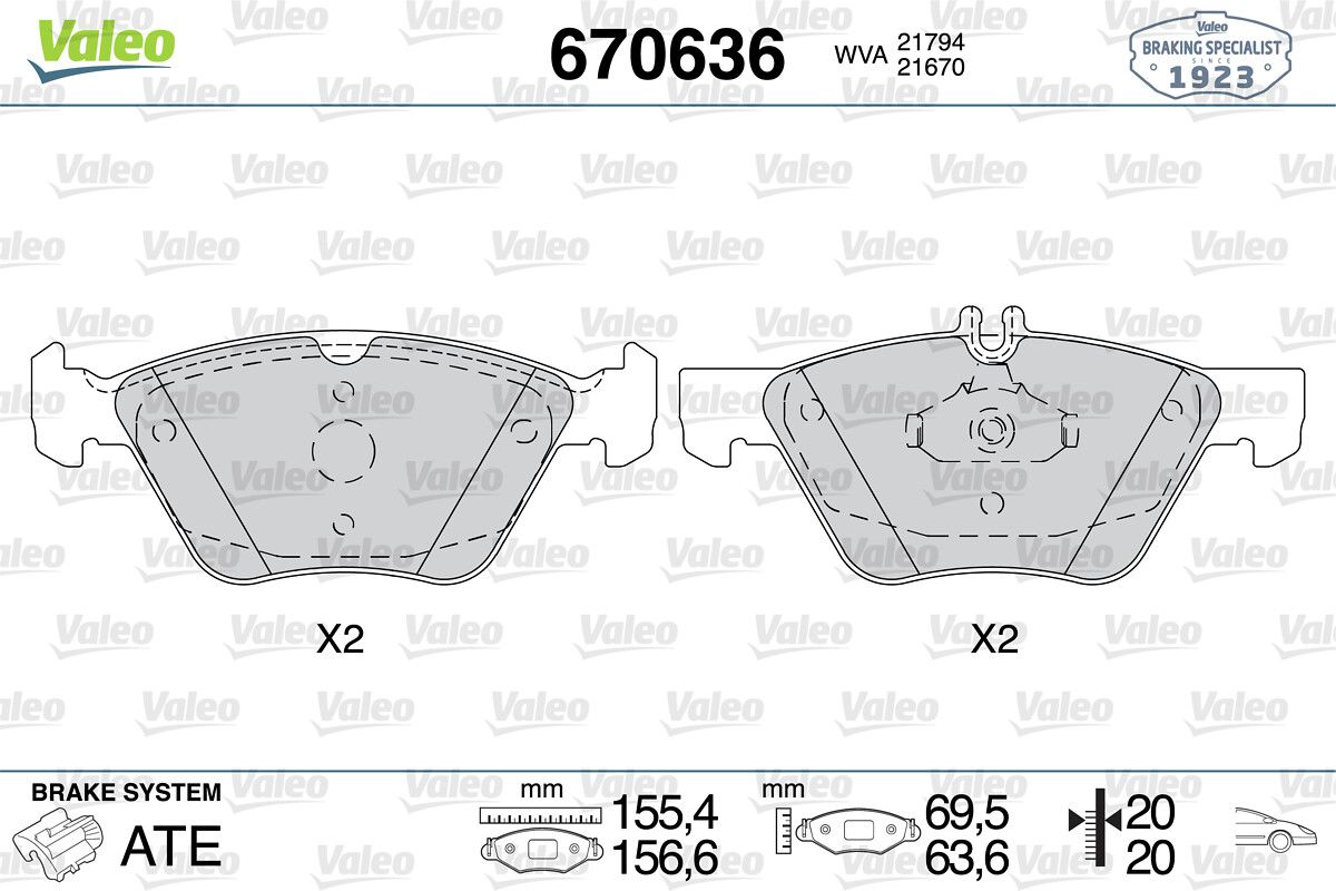 VALEO 670636 | Fren Balata Ön 98-03 E.S-W210 E280-E310 (Fren balata seti, diskli fren)