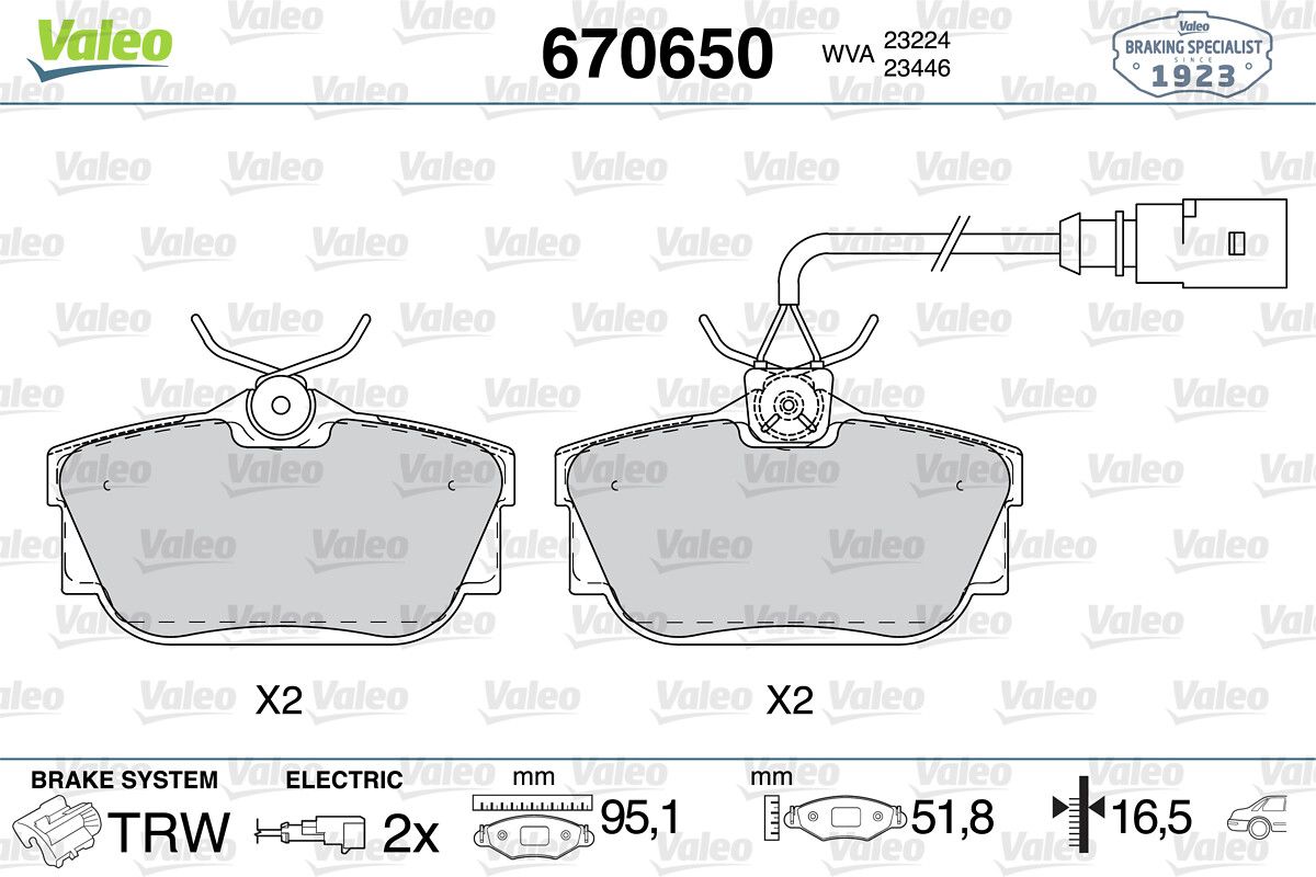 VALEO 670650 | Fren Balata Arka <03 T.Porter.T4 + Fs (Fren balata seti, diskli fren)