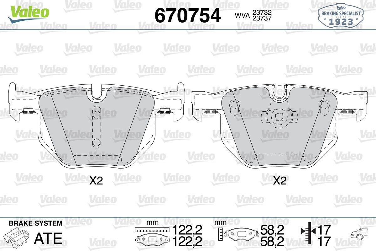 VALEO 670754 | Fren Balata Arka 04-BMW 5S-E60