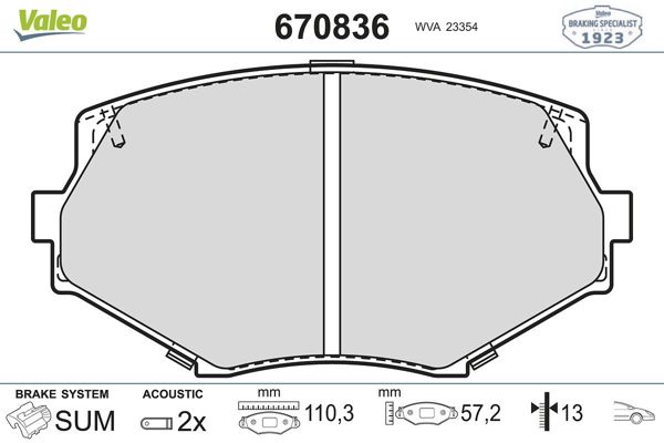 VALEO 670836 | Fren Balata Ön 99-Mx-5 (Fren balata seti, diskli fren)