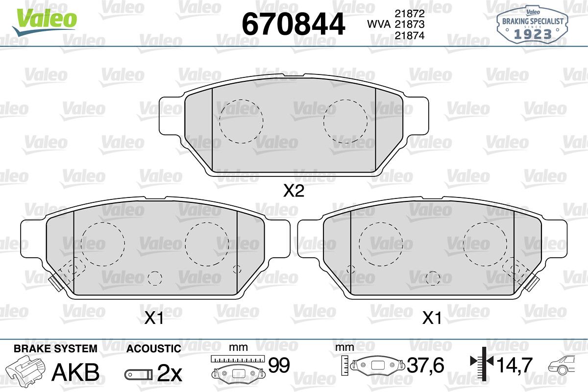 VALEO 670844 | Arka Fren Balatası Carisma 1.6 1.8 98-00 Carisma 00-06 Colt 92-03 Persona 96-Wıra 00 - (Fren balata seti, diskli fren)