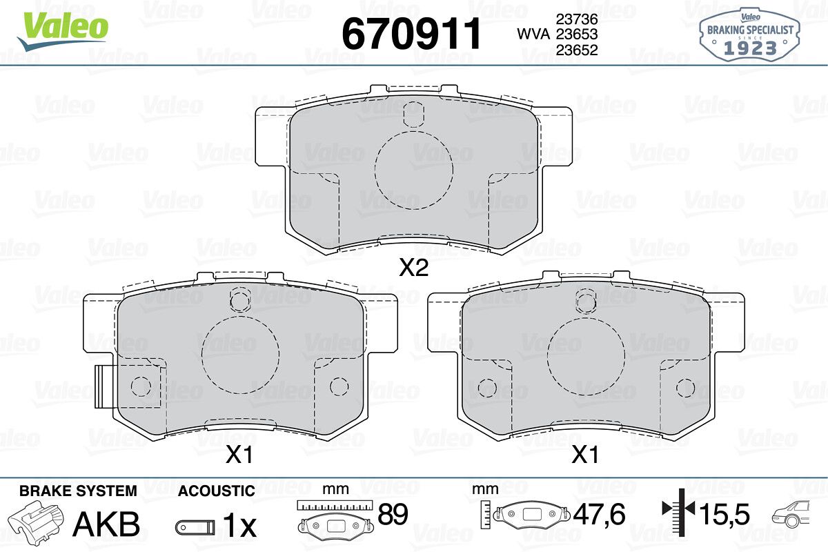 VALEO 670911 | Fren Balata Arka 03-07 Ha.Cr-V