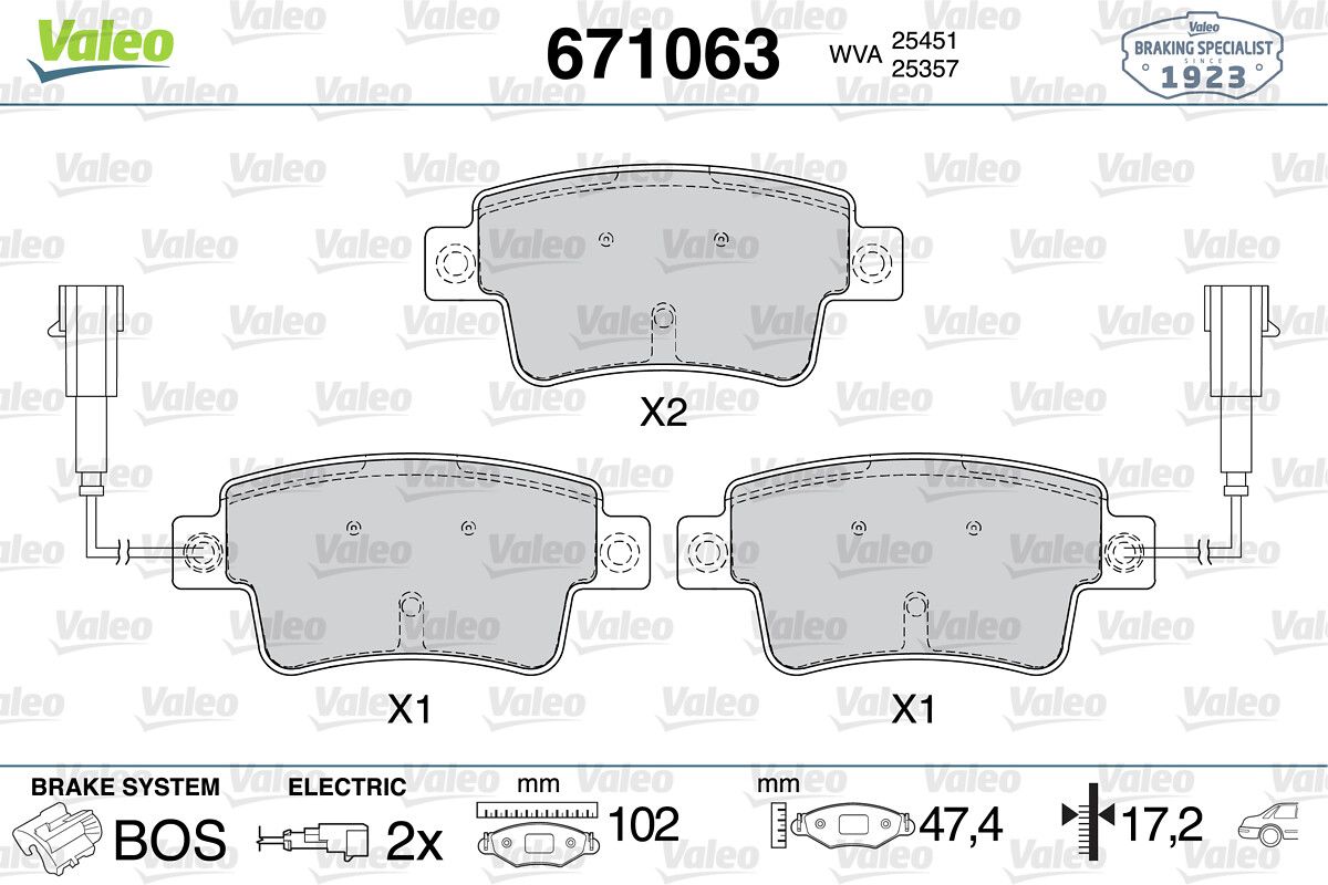 VALEO 671063 | Fren Balata Arka 10-G.Punto-Punto.Evo