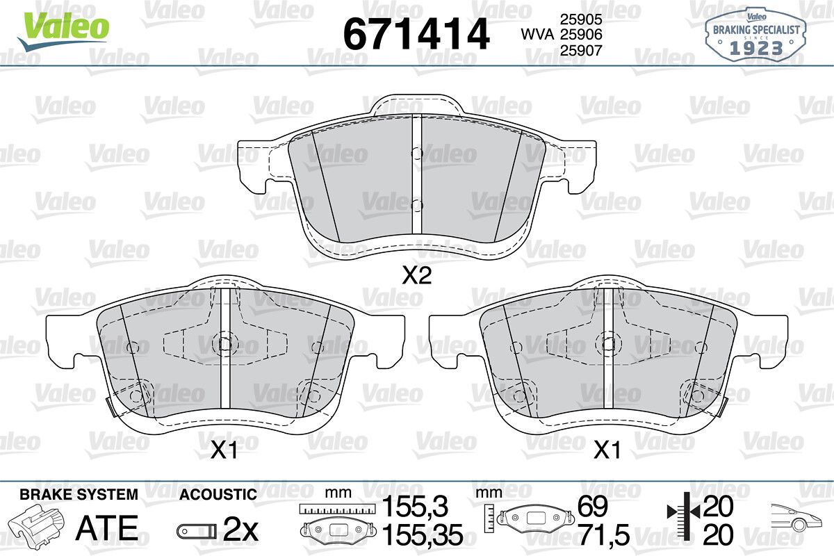 VALEO 671414 | Fren Balata Ön 14-500L (Fren balata seti, diskli fren)