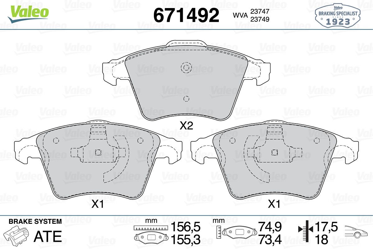 VALEO 671492 | Fren Balatası Ön (156mm) T5 03= > (16 Inc)