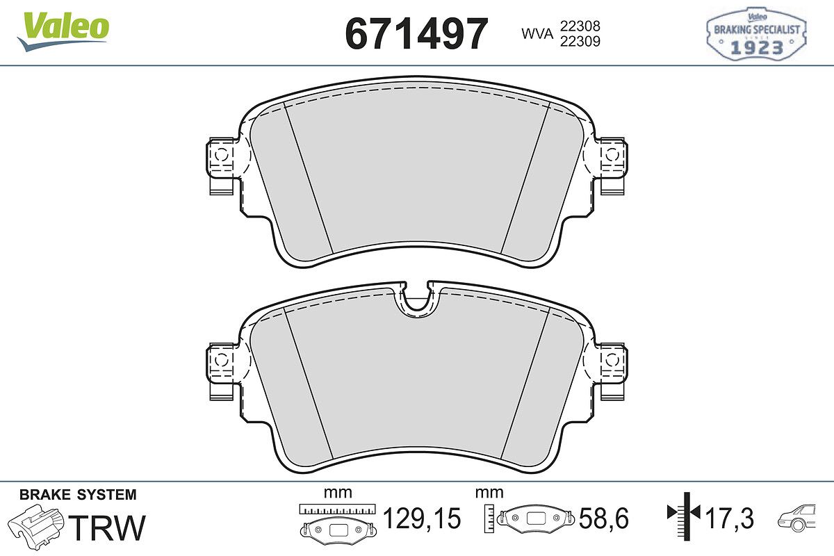 VALEO 671497 | Fren Balata Arka 16-Aı.A4-A5-Q5-Q7 (Fren balata seti, diskli fren)