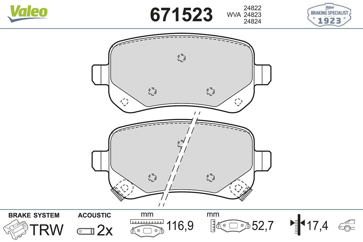 VALEO 671523 | Fren Balatası Arka-Fiat Freemont 2.0 JTD (Fren balata seti, diskli fren)