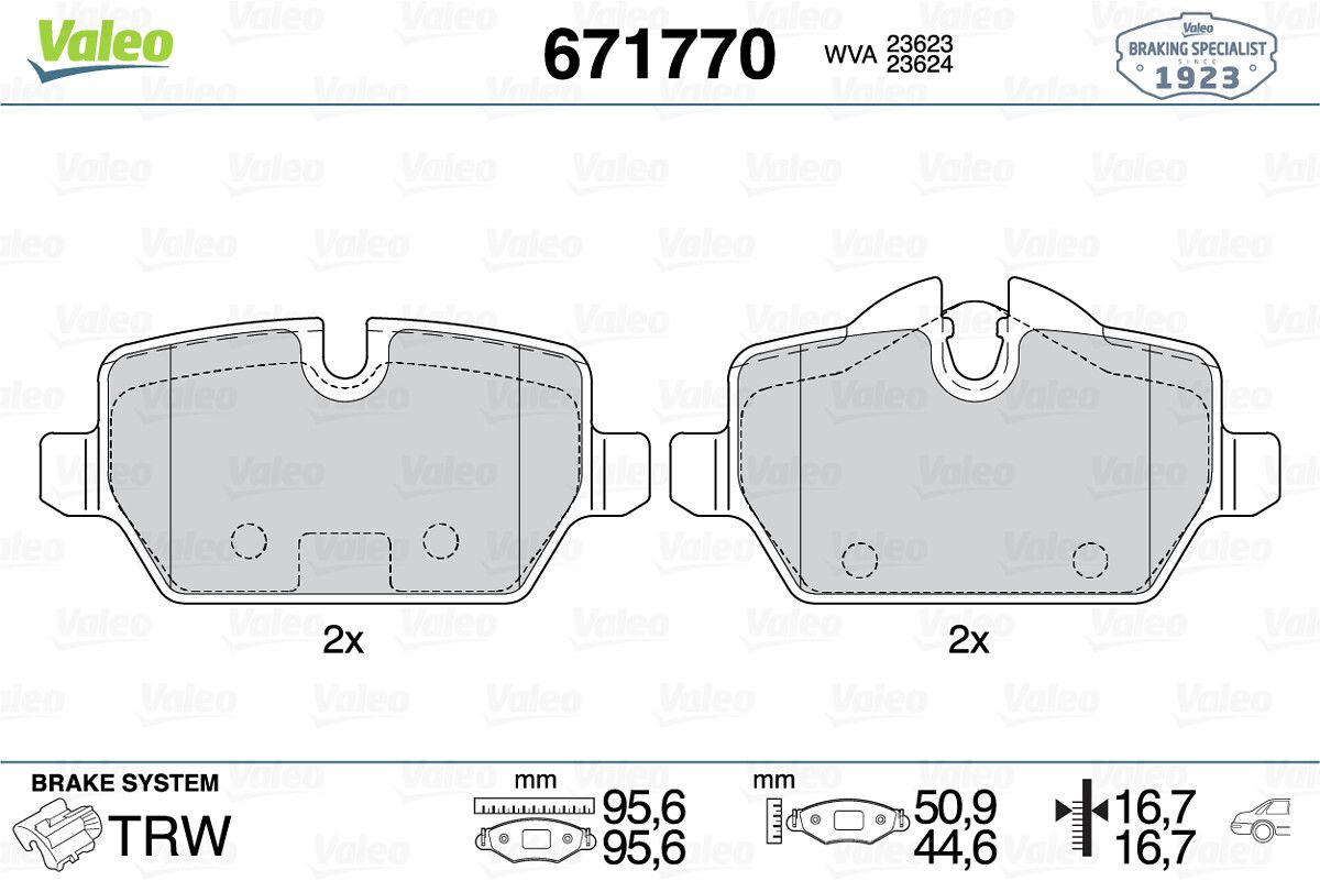 VALEO 671770 | Fren Balata Arka 10-Mini Cooper (Fren balata seti, diskli fren)