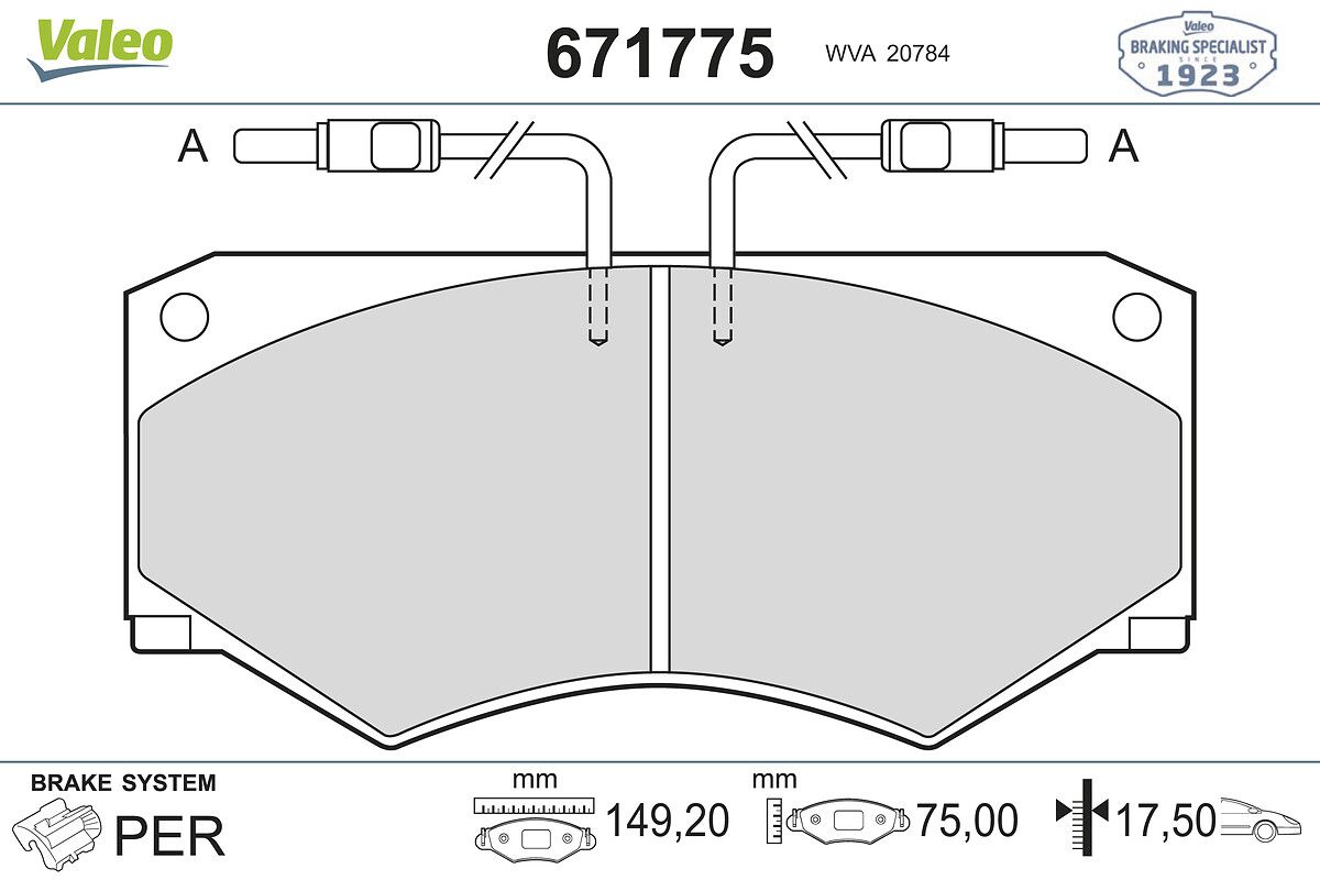 VALEO 671775 | Fren Balatası Ön Wva 20784 Mercedes: Sprinter Iveco: Daily- 99 (Fren balata seti, diskli fren)