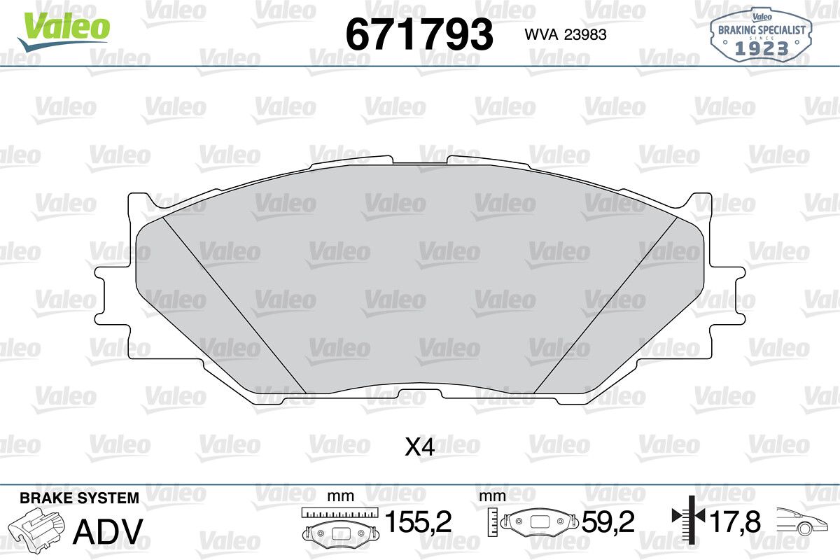 VALEO 671793 | Fren Balatası Ön Toyota Lexus Is II 05-13 (Fren balata seti, diskli fren)