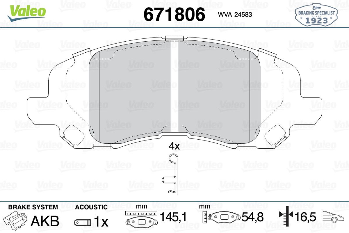 VALEO 671806 | Fren Balatası Ön-Jeep Chrysler Compass 07-Patrıot 07-Lancıa Flavıa 12-Sebrıng 06-11 (Fren balata seti, diskli fren)