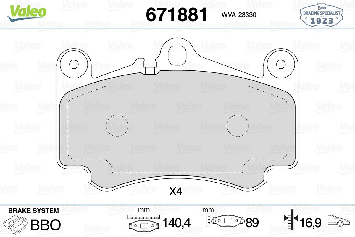 VALEO 671881 | Fren Balata Ön 99-13 Pe.911 (Fren balata seti, diskli fren)